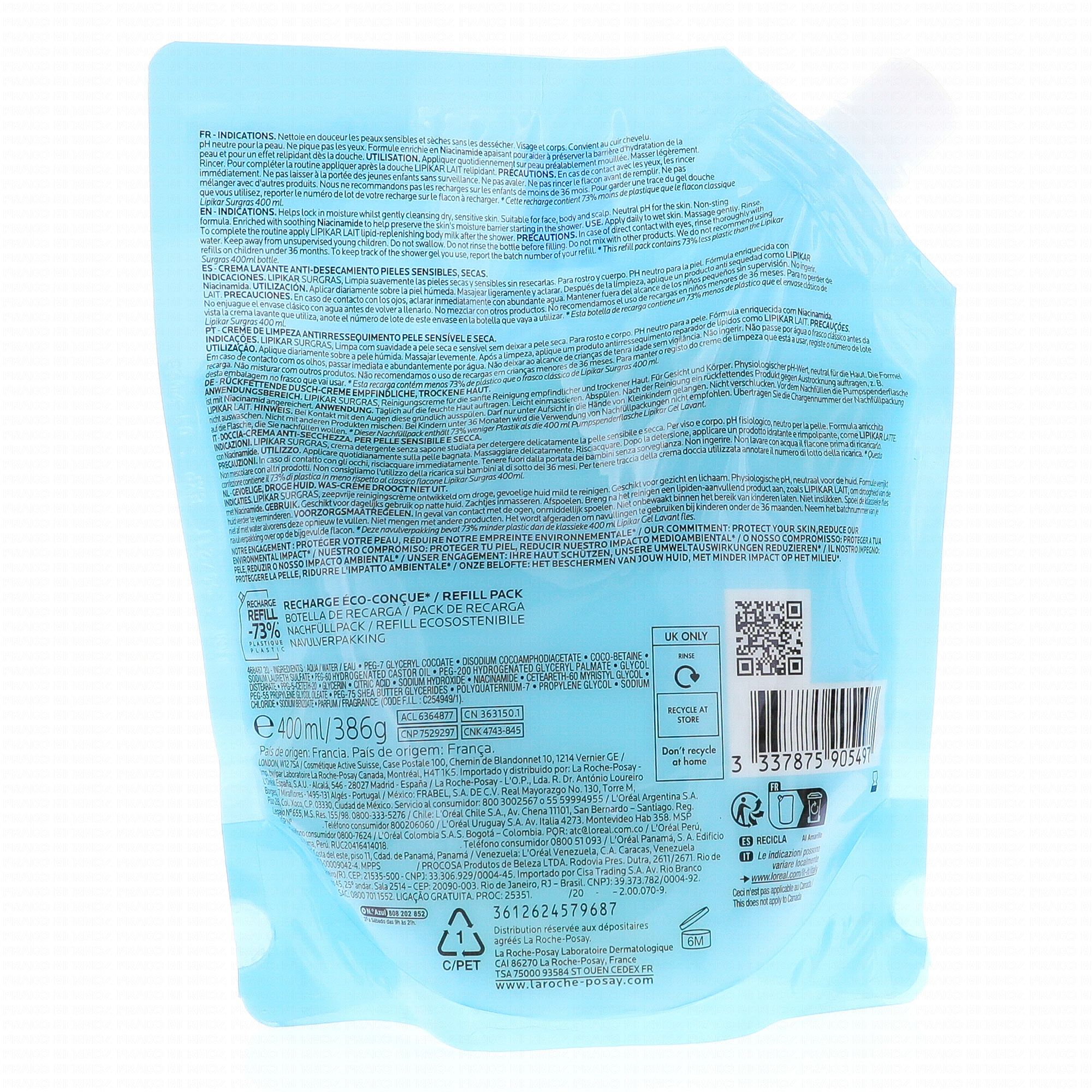 LA ROCHE-POSAY Lipikar surgras - Crème lavante eco recharge 400ml #skincare