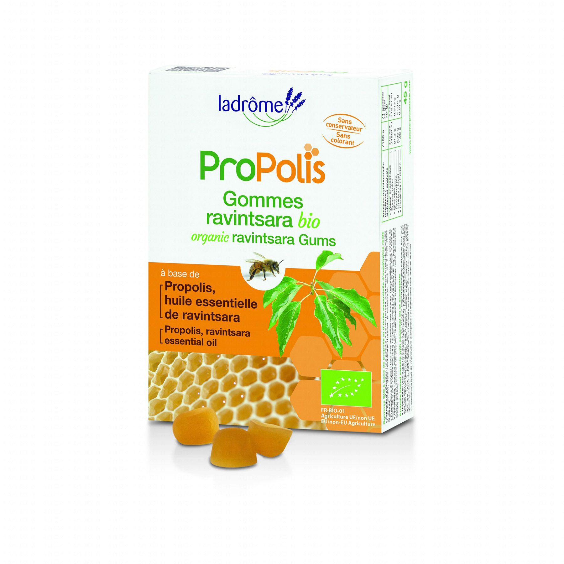 LADRÔME Propolis gommes Ravintsara bio 45g contient les éléments suivants :