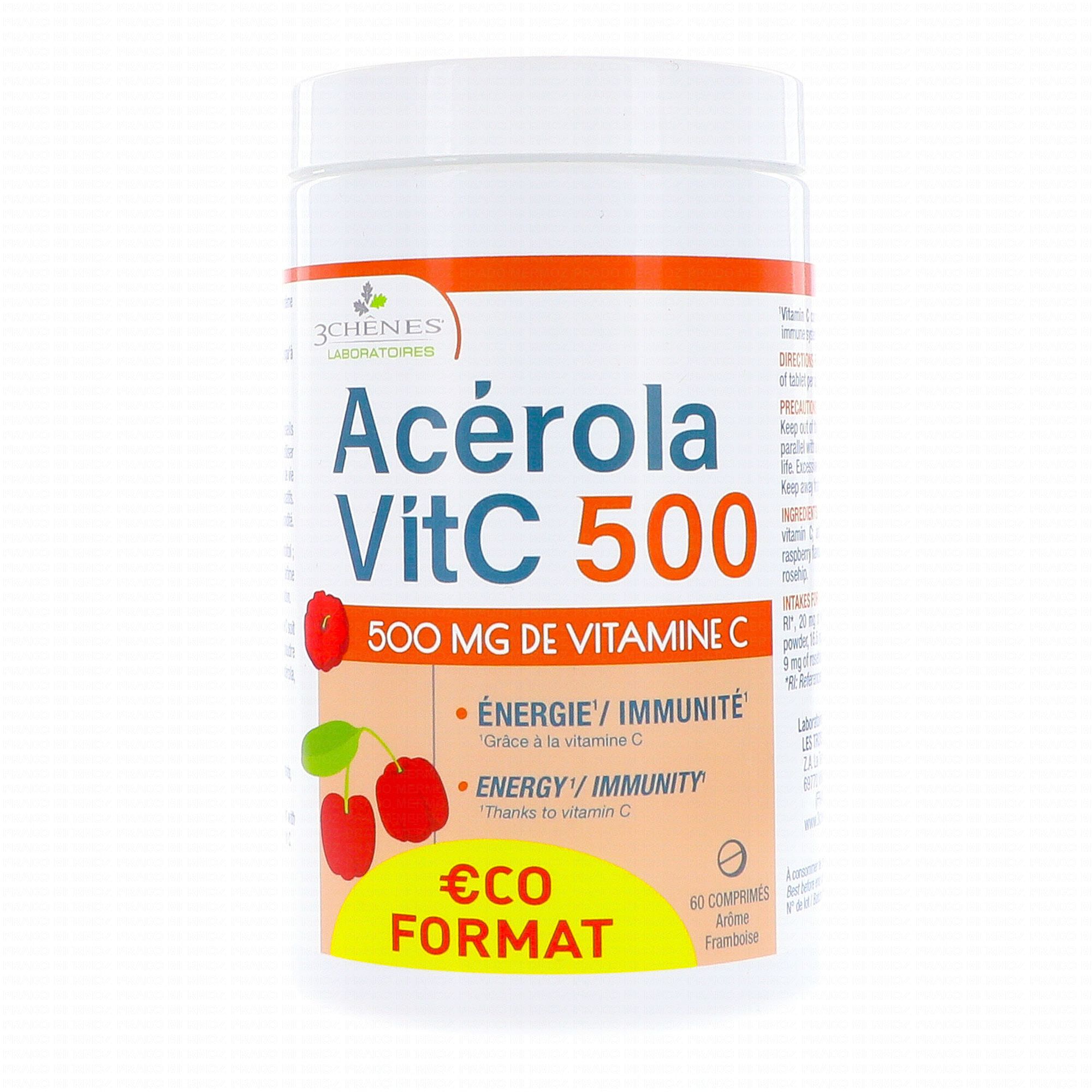 LES 3 CHENES Acérola Vit C 500 est un complément à base d'acérola et de vitamine C.