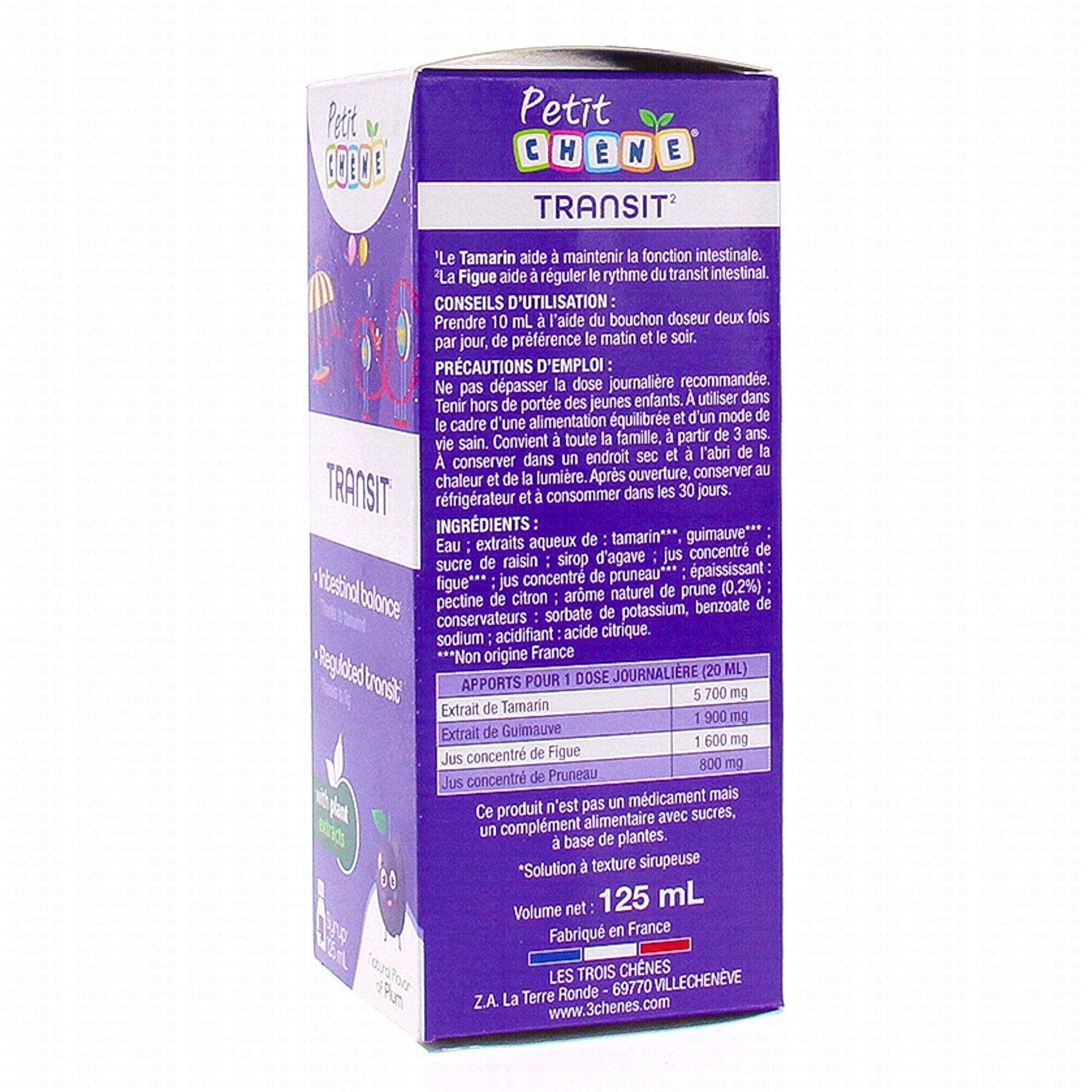 LES 3 CHENES Petit chêne - Sirop Transit 125ml contient les éléments suivants :