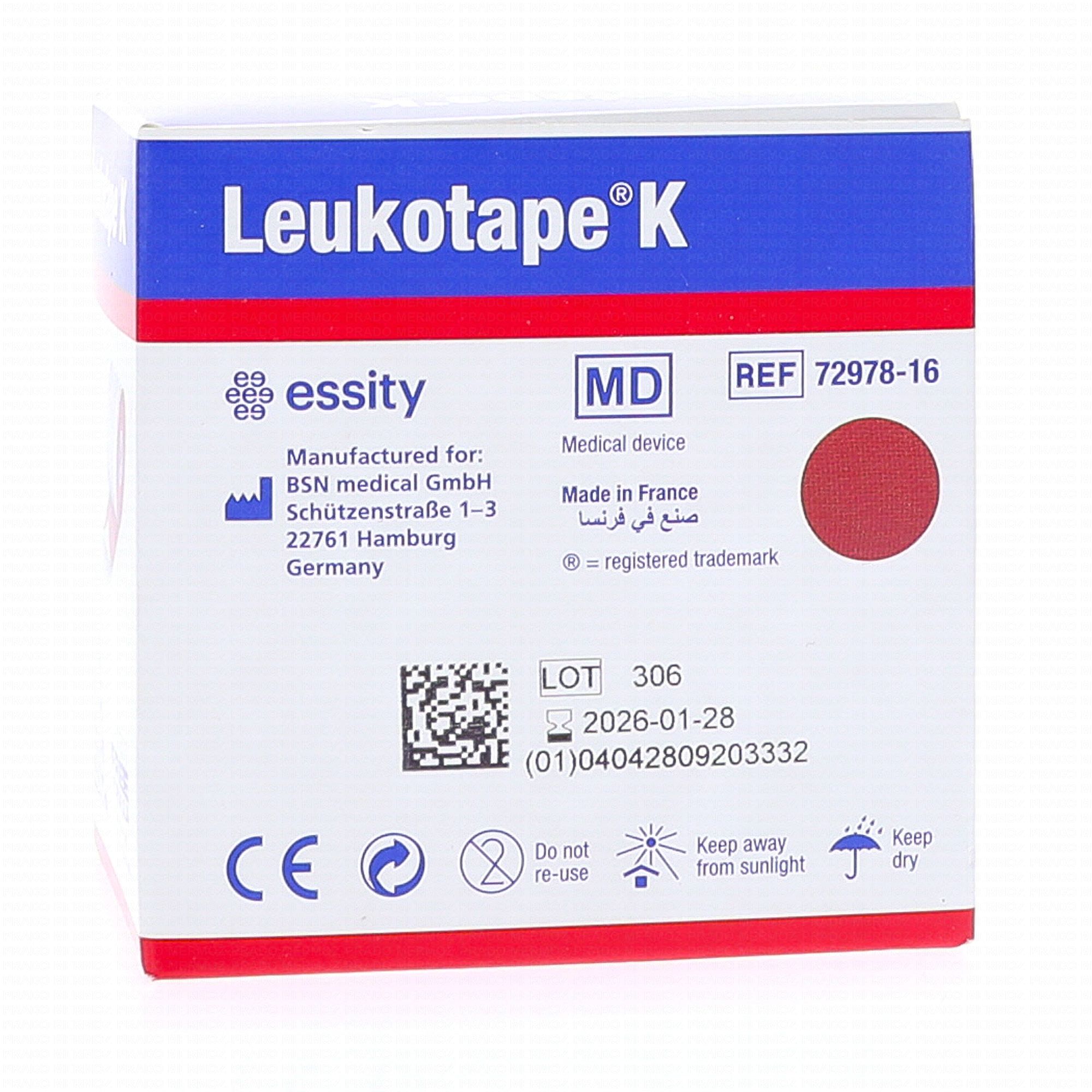 LEUKOPLAST Leukotape k - Bande taping de kinéologie 5cm x 5m rouge #skincare