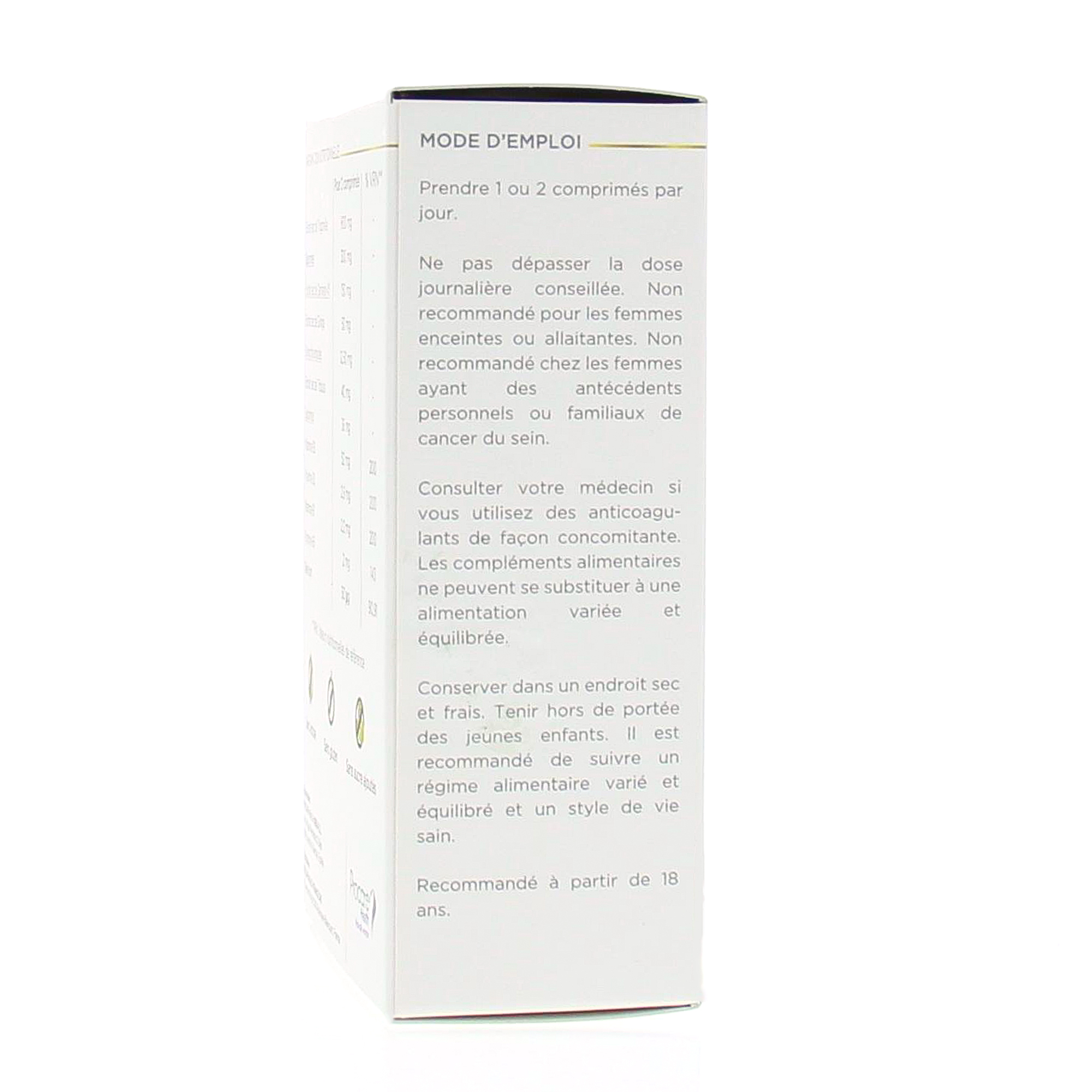 Non recommandé chez les femmes ayant des antécédents familiaux de cancer du sein. Consultez votre médecin si vous utilisez des anticoagulants de façon concomitante. Recommandé à partir de 18 ans.