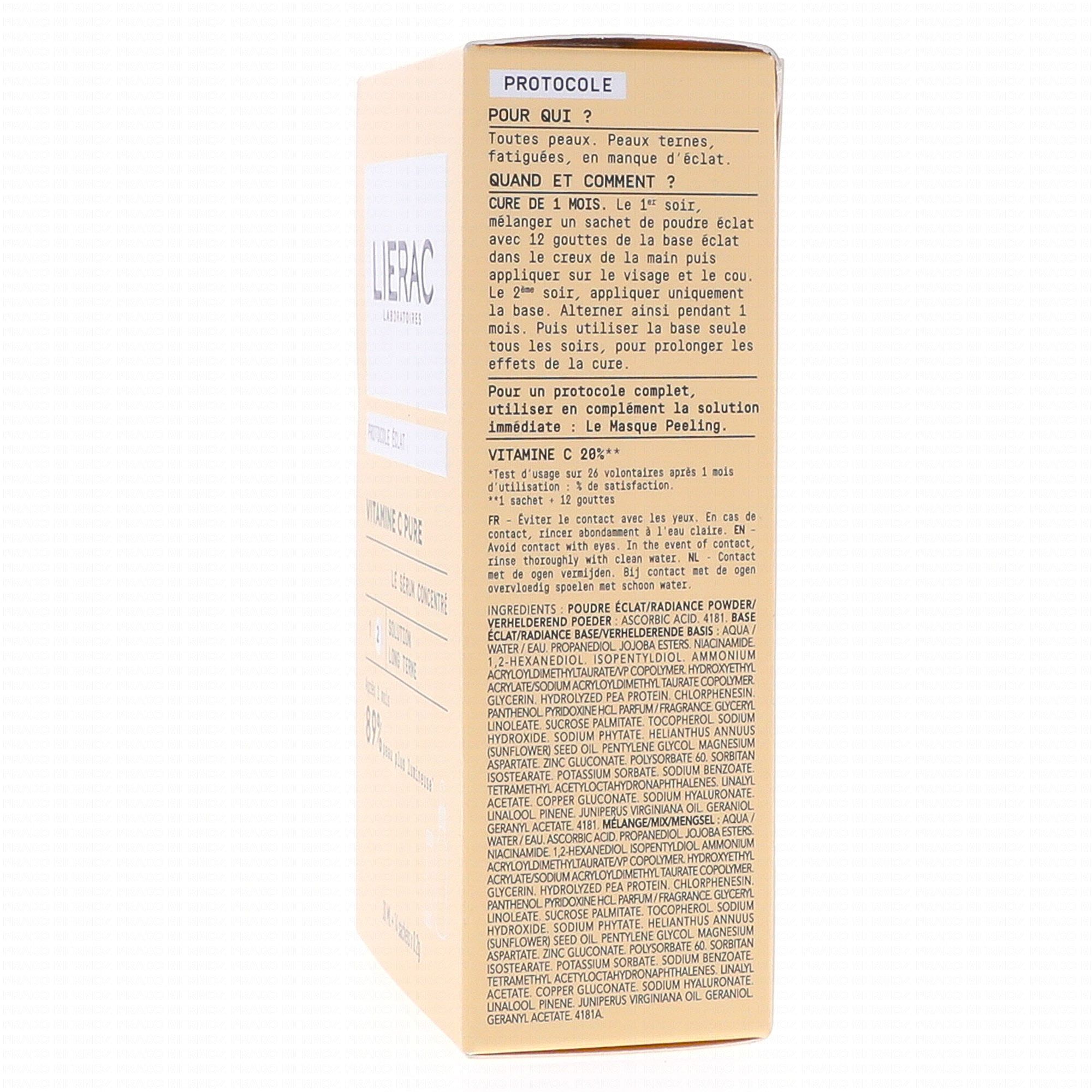 Sérum concentré protocole éclat de lierac booste l'éclat, lisse et revitalise la peau grâce à 20% de vitamine c pure, pour un teint lumineux.