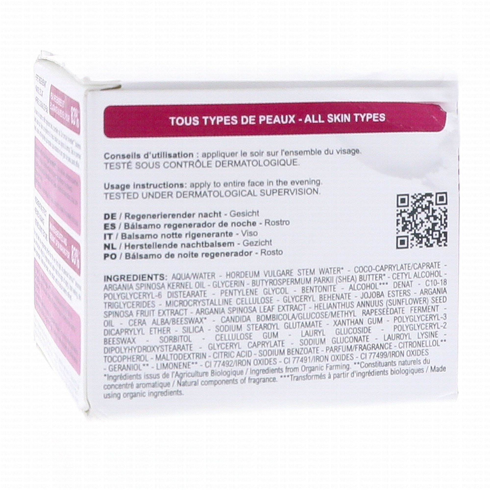 Révélez une peau plus jeune et reposée avec ce nouveau baume régénérant anti-âge. Ce soin de nuit infusé en feuilles d'argan, véritable allié de jeunesse, raffermit, lisse et illumine la peau pendant sa phase de récupération nocturne. Au réveil, la peau est reposée, comme régénérée.