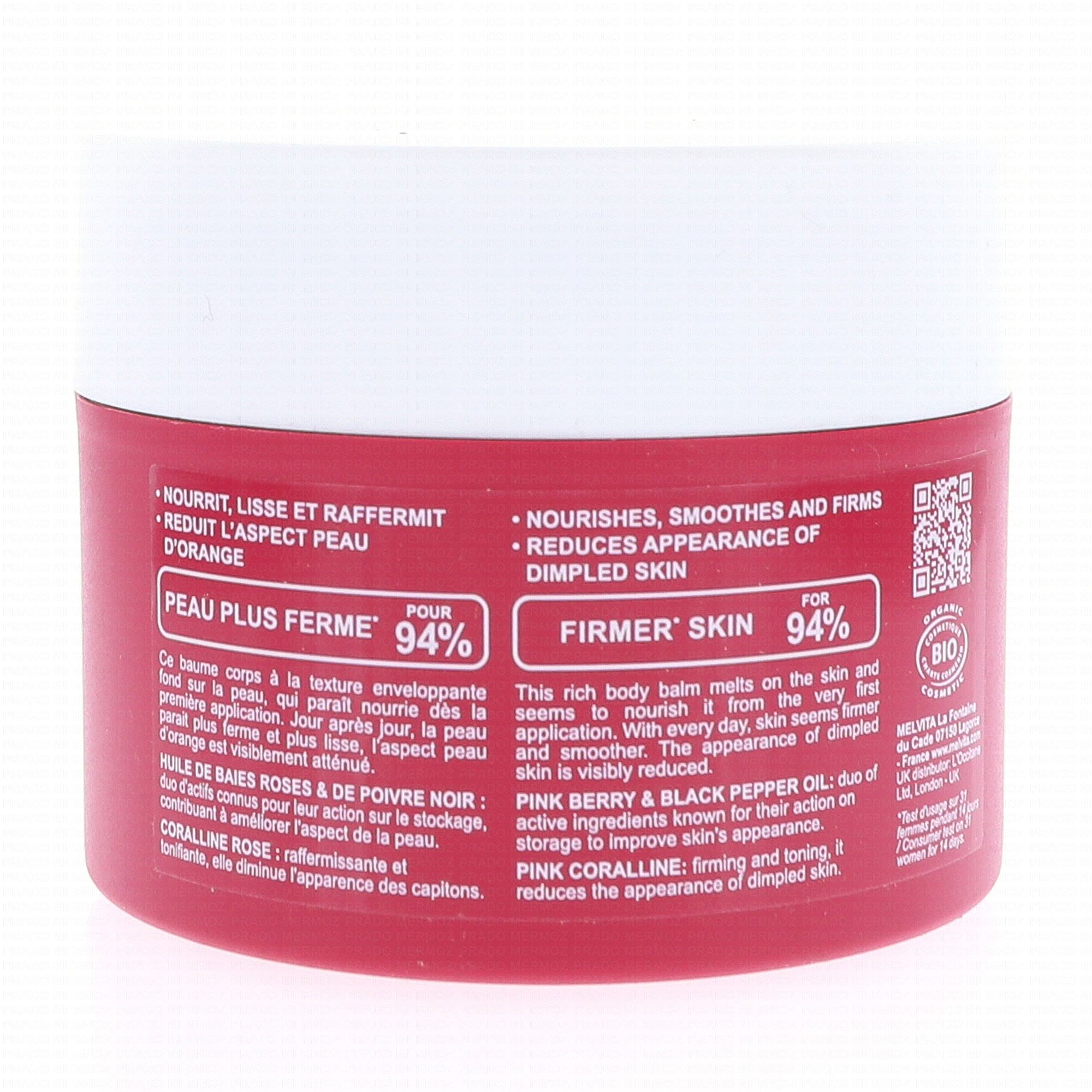 Enrichi en huile de baies roses et en coralline rose, ce soin certifié bio, à la texture innovante huile-en-baume et nourrissante, contribue à raffermir et lisser la peau et aide à lutter contre l'aspect peau d'orange.