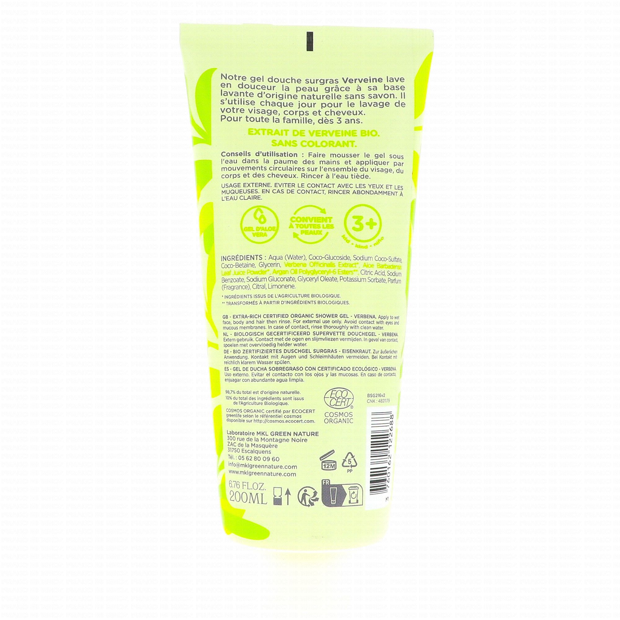 MKL Gel douche surgras bio Verveine 1L 200ml #skincare