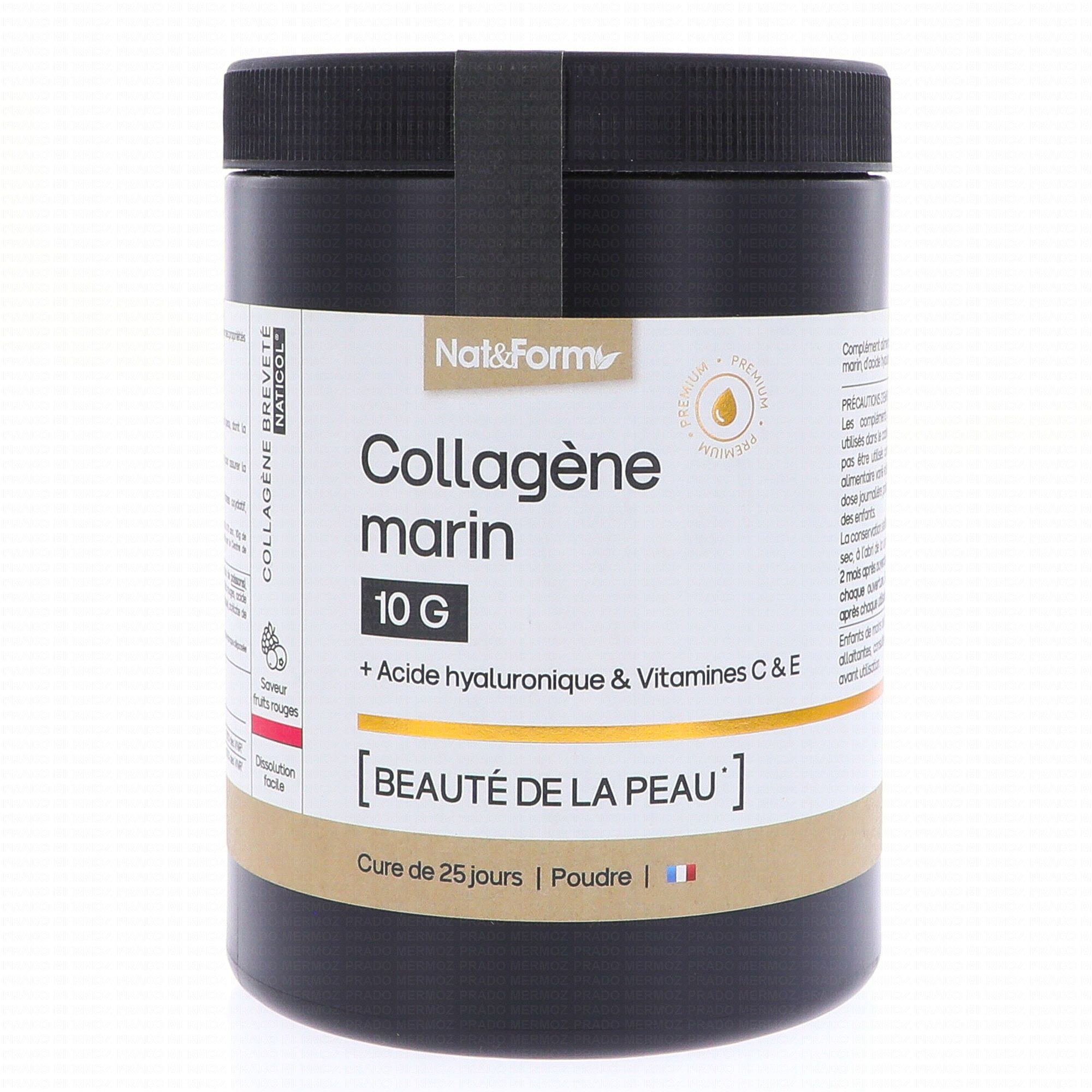 NAT & FORM Collagène Marin 10g Beauté de La Peau Saveur Fruits Rouges Poudre 315g contient les éléments suivants :