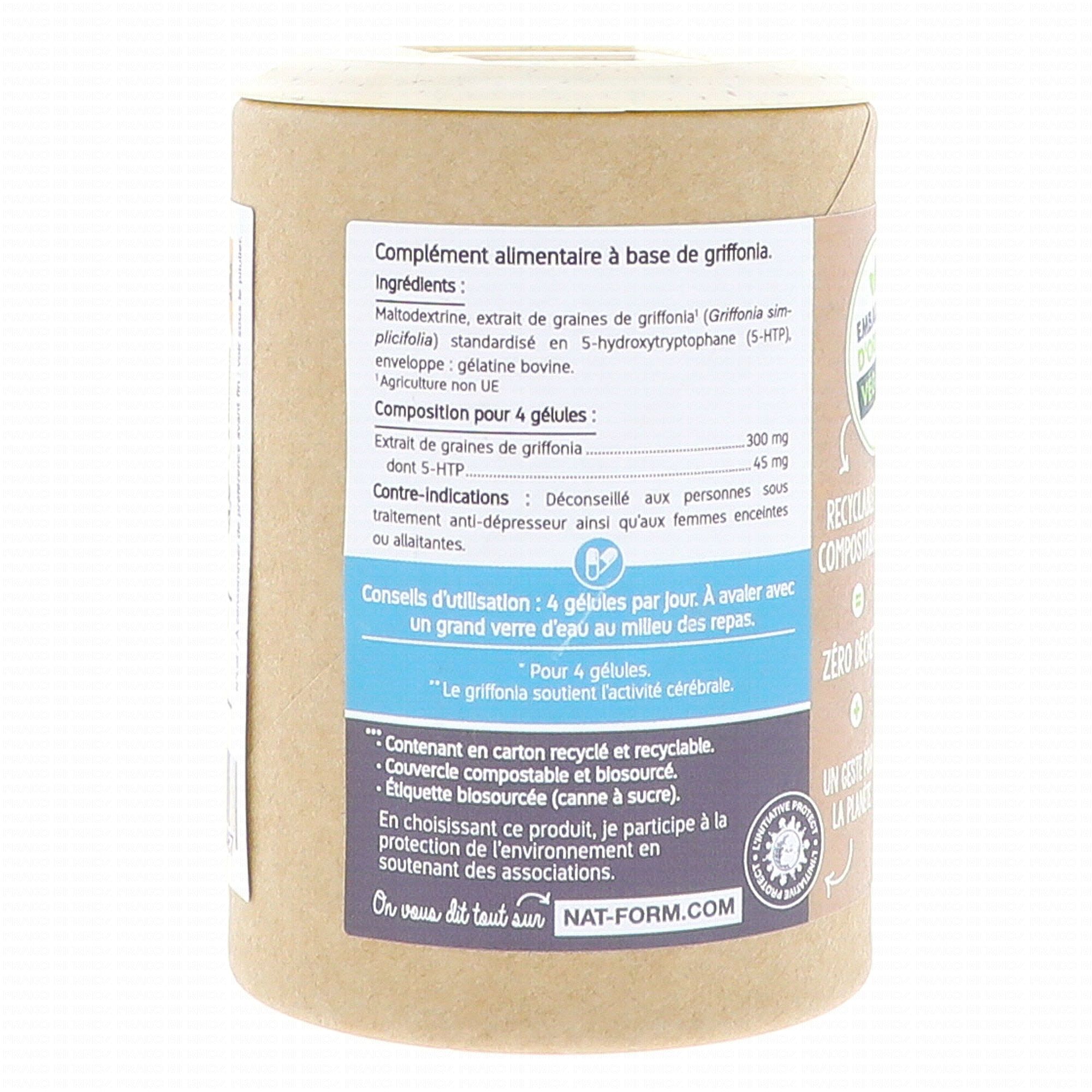 NAT & FORM Ecoresponsable - Griffonia humeur x60 gélules est un complément alimentaire qui contribue à maintenir l'humeur positive et de bonnes fonctions cognitives grâce à la présence de Griffonia.