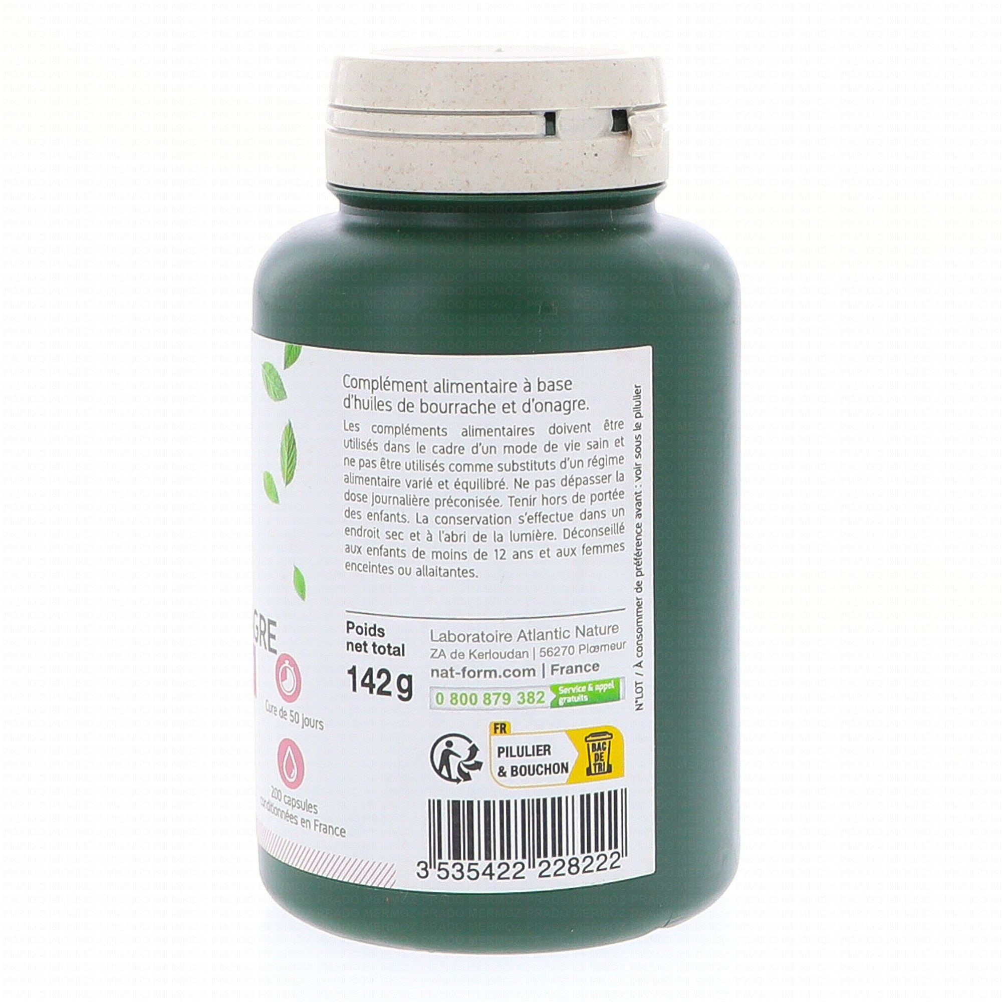NAT & FORM Original - Huiles d'Onagre et Bourrache 200 capsules contient les éléments suivants :