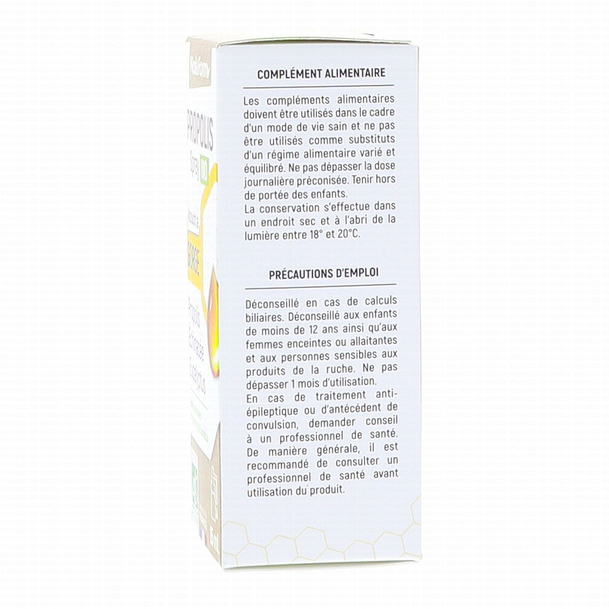 Extrait hydro-alcoolique de propolis bio* (1/10)..............182 mg