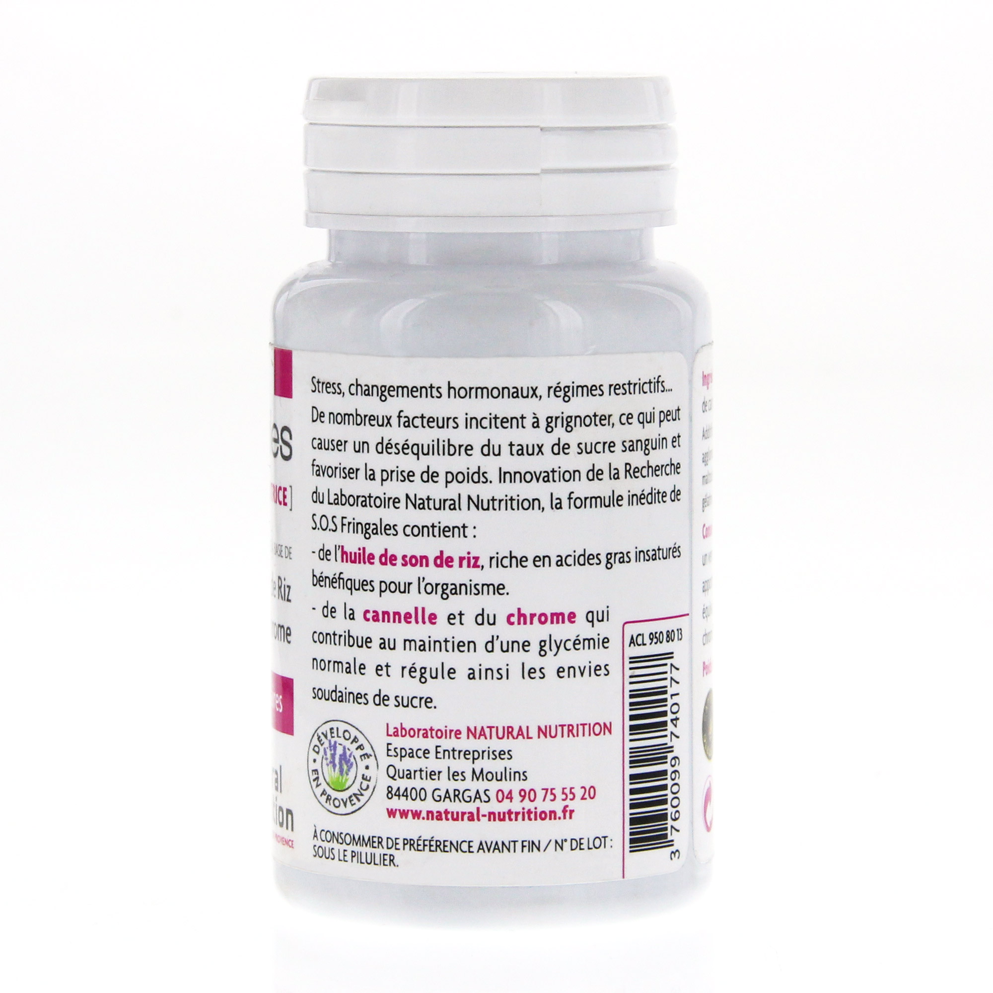 Riche en chrome, SOS Fringales limite l'envie de sucre, et active la combustion des graisses. Sa teneur en huile de son de riz régule le taux de glucoses et stoppe l'absorption des sucres et des graisses. Il contient également de la cannelle qui permet d'équilibrer les écarts alimentaires. Envies de grignotages et mauvaises habitudes alimentaires.