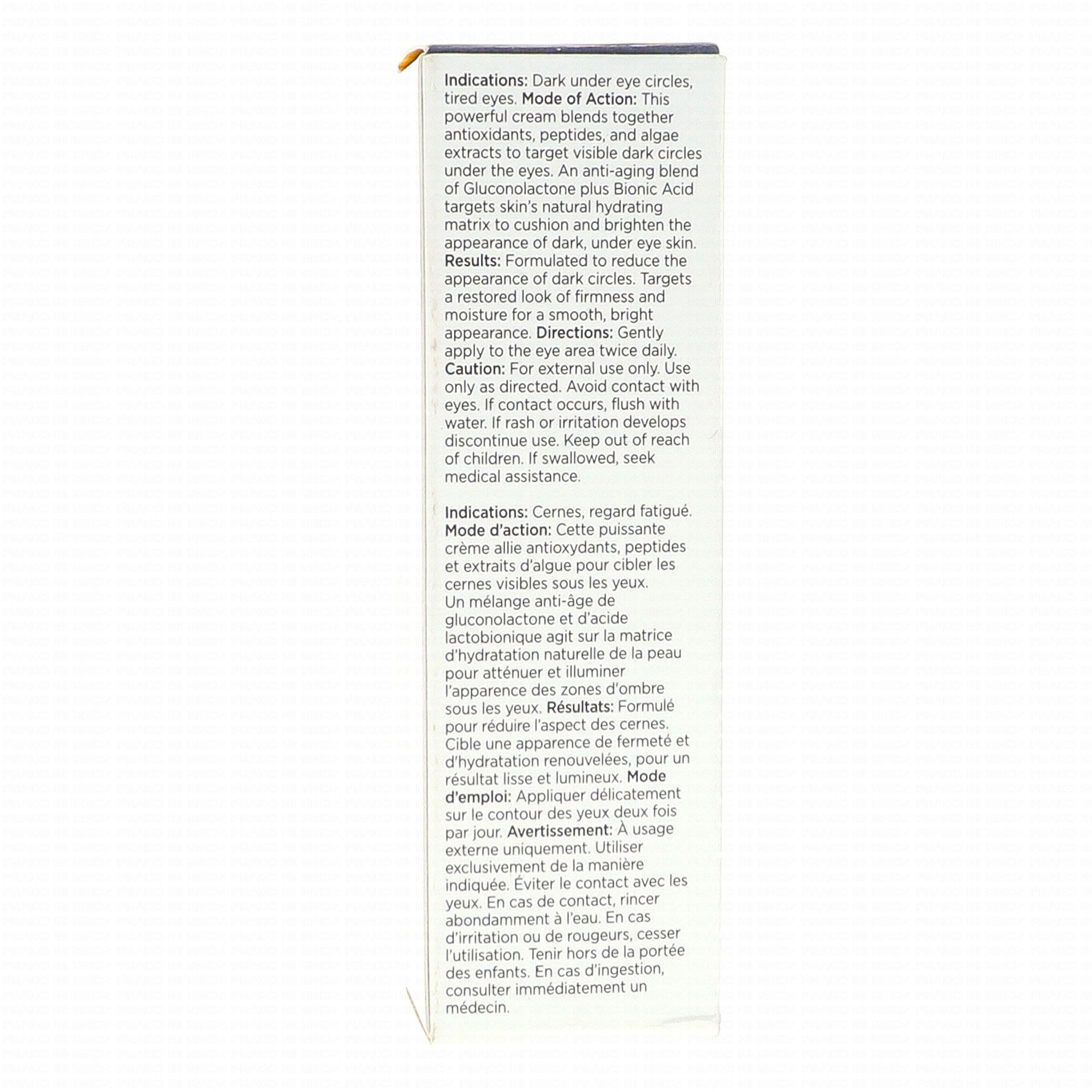 Redonnez éclat et jeunesse à votre regard grâce à cette crème qui allie antioxydants, peptides et extraits d'algue pour cibler les cernes visibles sous les yeux. Un mélange anti-âge à base de gluconolactone et d'acide lactobionique qui agit sur la matrice d'hydratation naturelle de la peau pour atténuer et illuminer l'apparence des zones d'ombre sous les yeux.