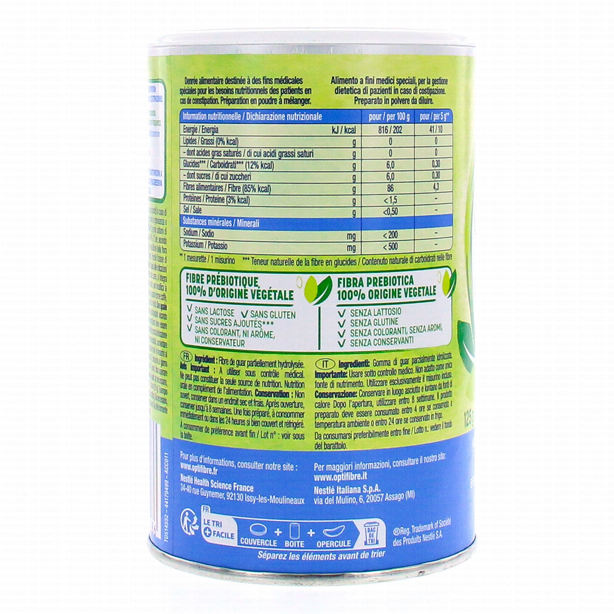 NESTLE Opti Fibre Constipation contient les éléments suivants :