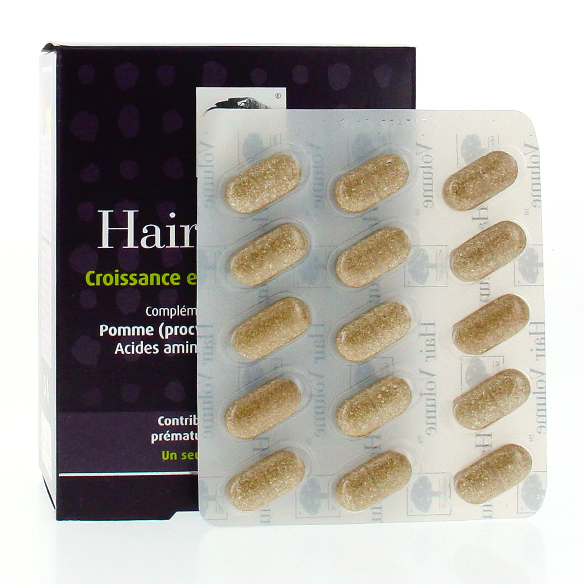 A base de micronutriments, d'extraits végétaux et notamment l'extrait de pomme, de la biotine et du zinc. Contribue à la croissance du cheveu et à conserver une pigmentation normale. Sans gélatine, sans sucre, sans sel, sans gluten, sans levure, sans soja, sans sésame, sans produit laitier, sans poisson, sans crustacé, sans fruit à coque, sans arachide, sans conservateur, sans arôme artificiel et sans colorant artificiel. Conditionnement : sous blister, étui carton. Volume et croissance capillaire, prévention de l'apparition des cheveux gris. Réservé à l'adulte. Convient aux végétariens et aux végétaliens.