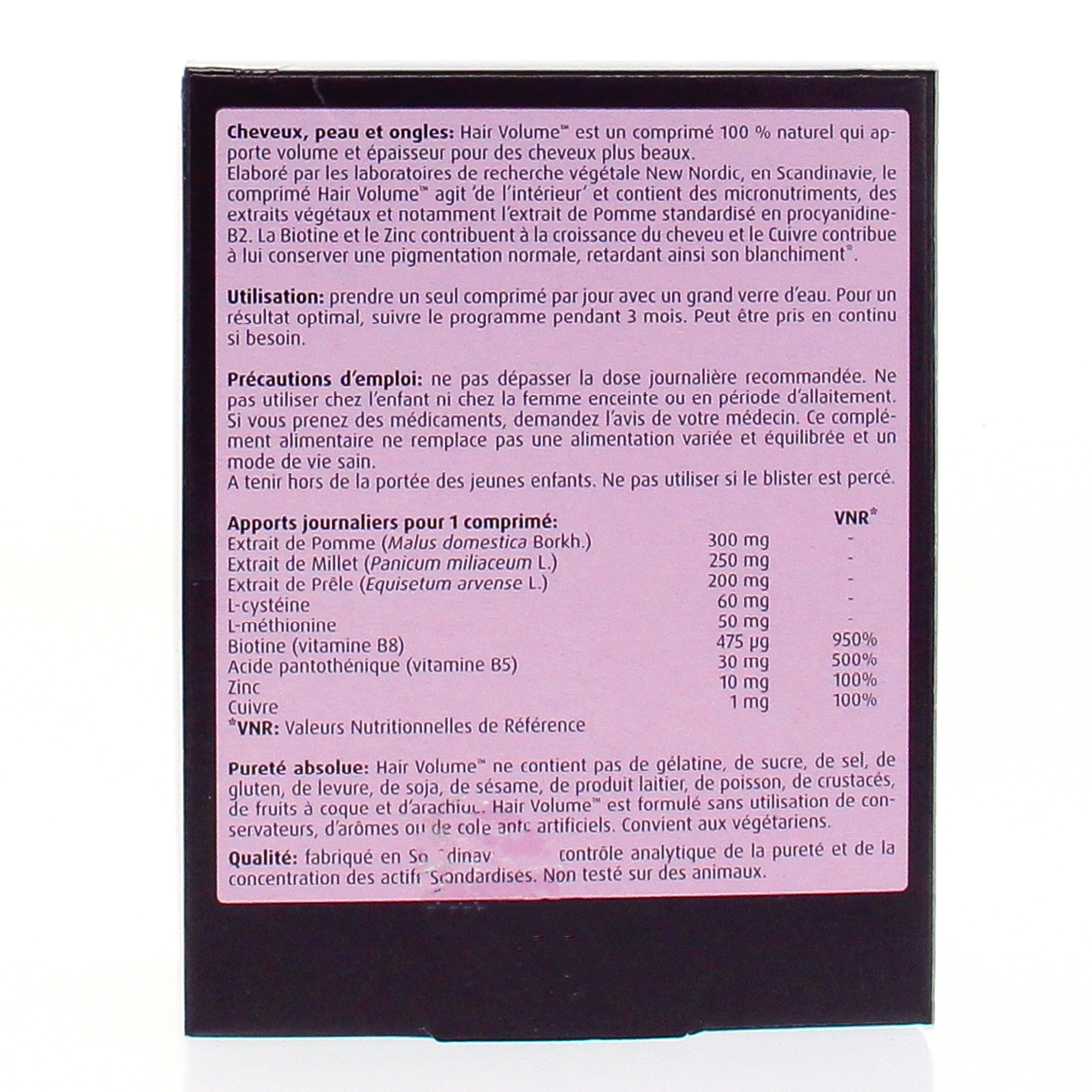 NEW NORDIC Hair volume 30 comprimés contient les éléments suivants :