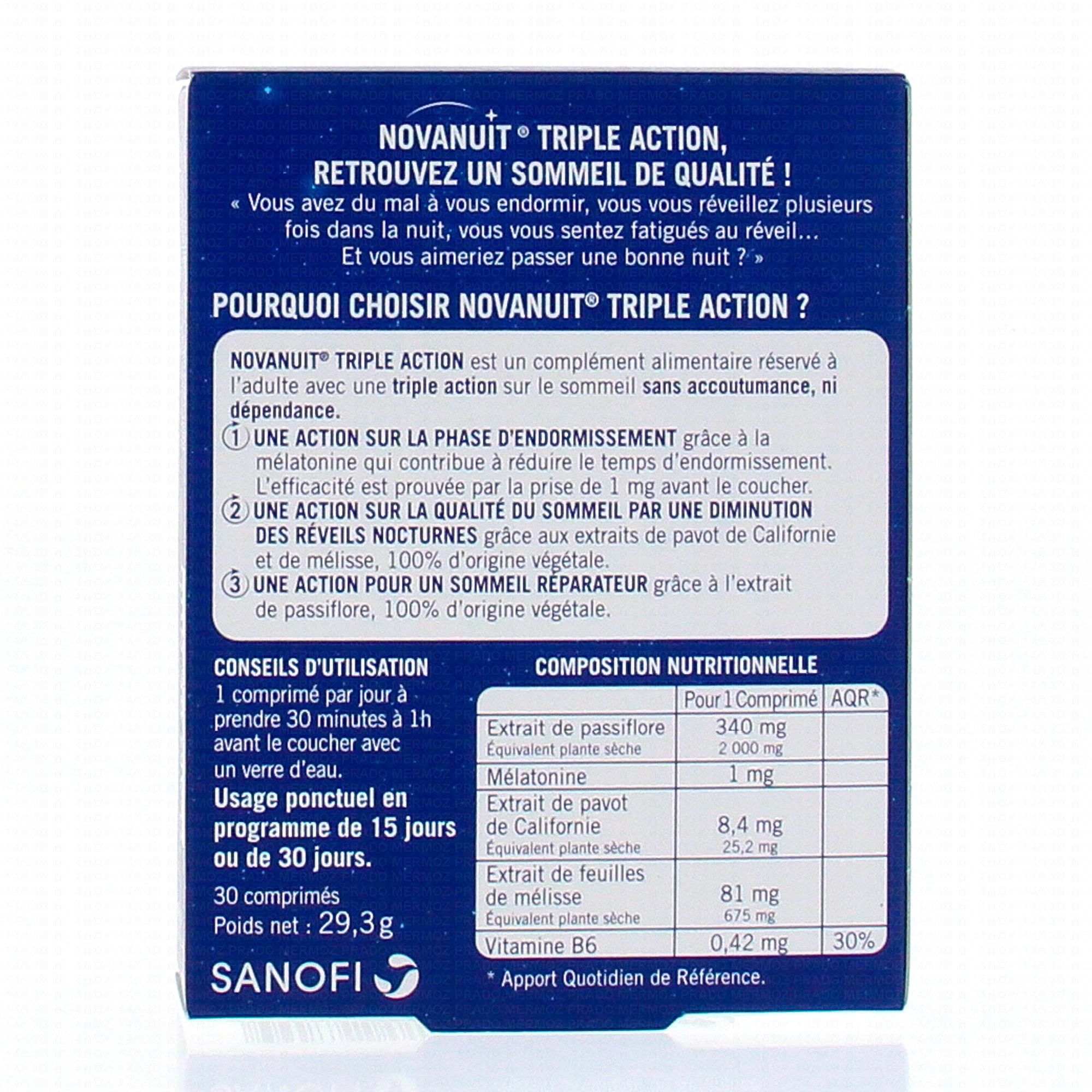 - Indications mentionnées sous réserve d'une consommation de 1 mg de mélatonine avant le coucher.