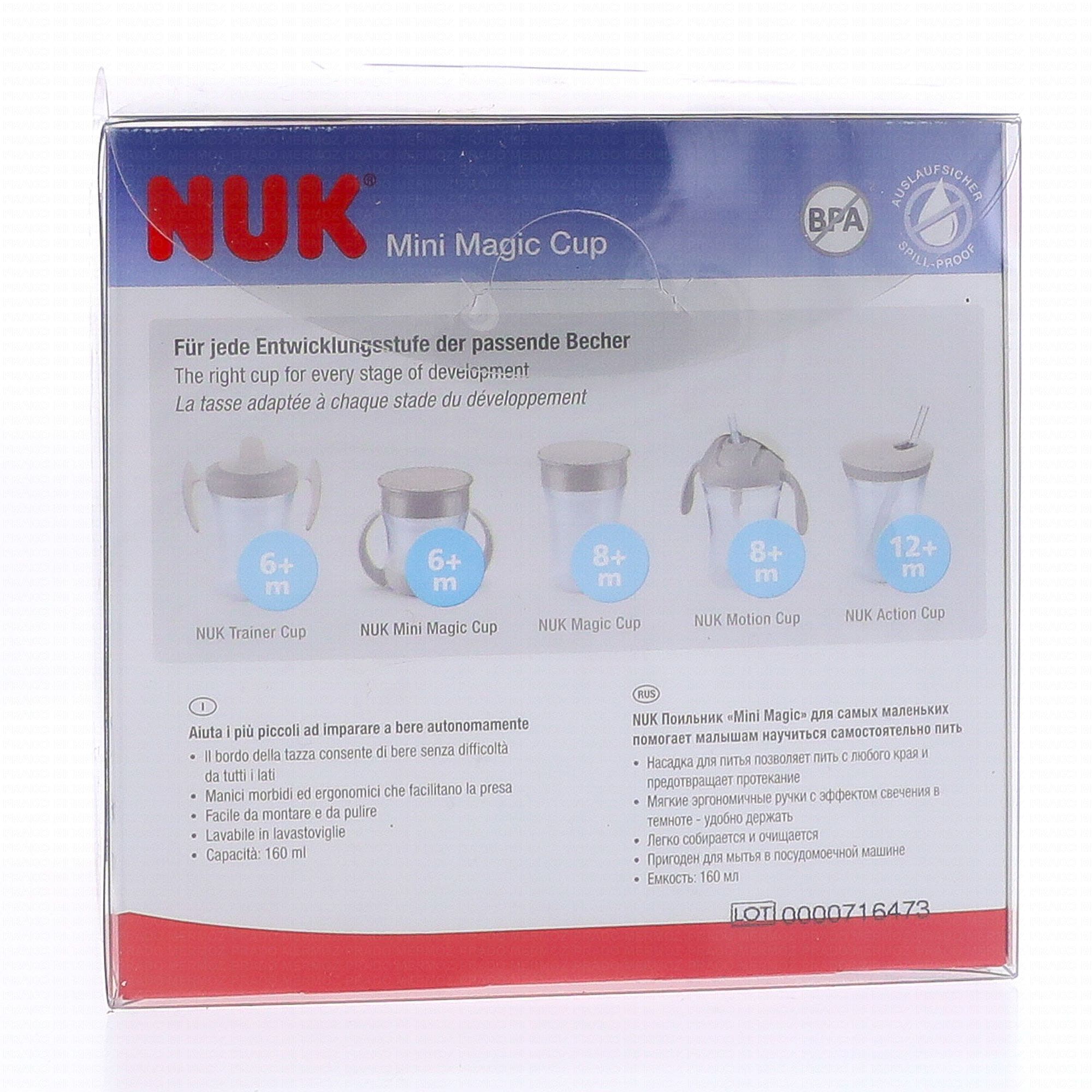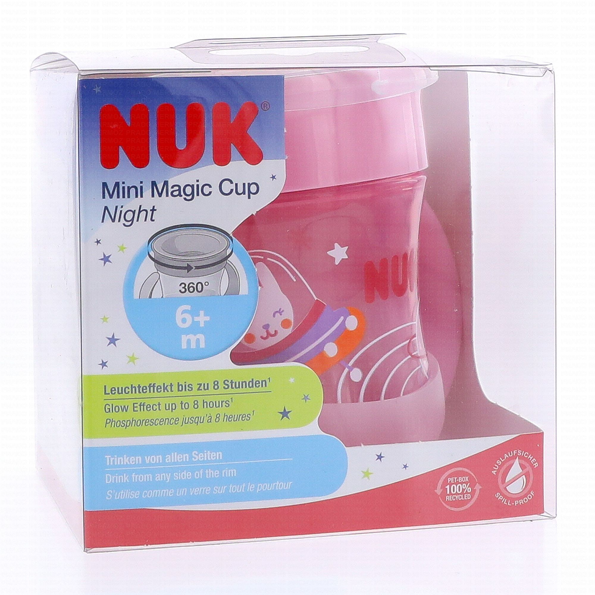 NUK Mini Magic Cup Night 160 ml 6 Mois et + - Couleur : Rose est une tasse ergonomique adaptée à chaque stade du développement de l'enfant. Elle permet d'apprendre à boire de manière autonome et aisément, sur tout le pourtour de la tasse. Les anses phosphorescentes sont souples et faciles à saisir.