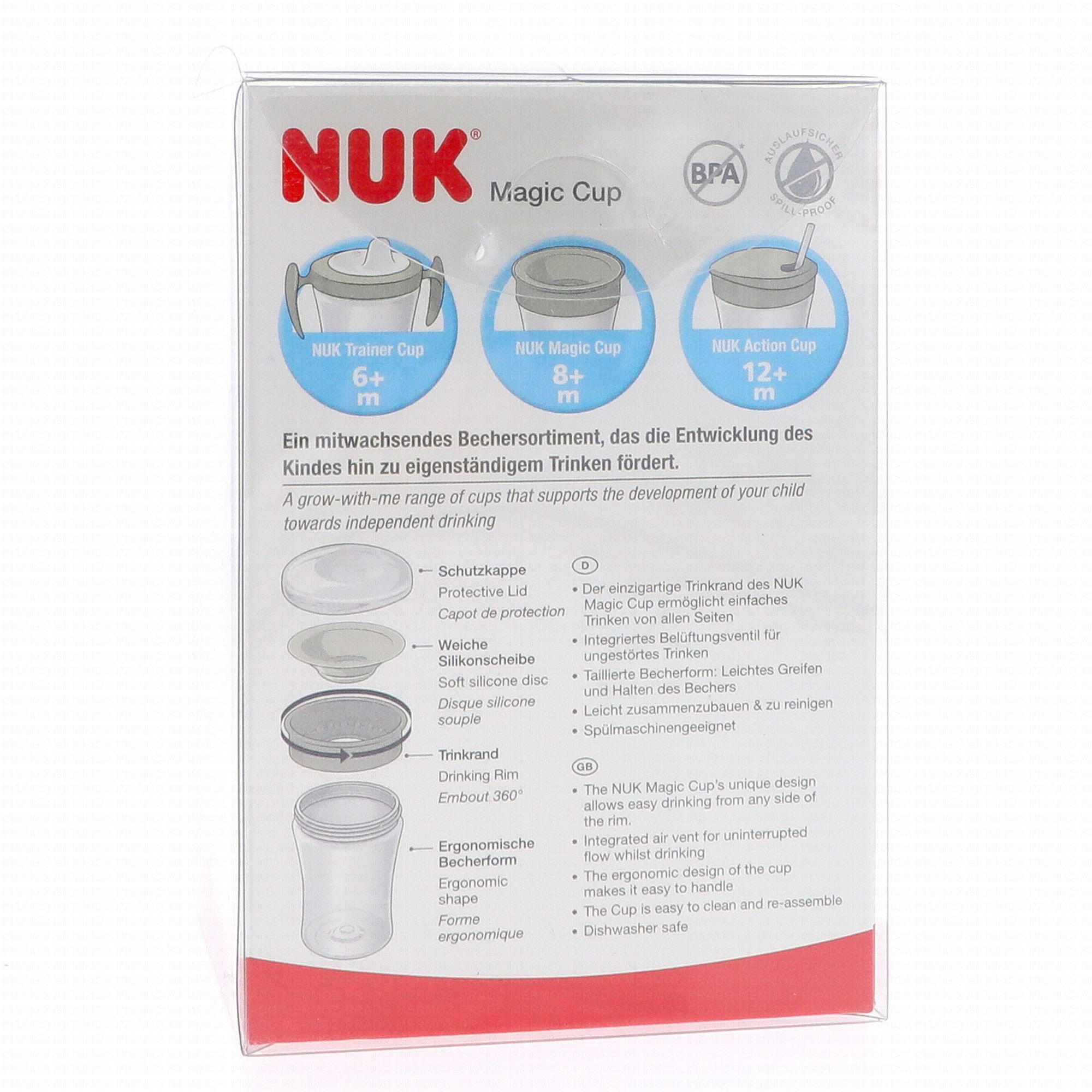Pourquoi "magique" ? Elle est dotée d'un rebord qui peut être utilisé de la même façon des deux côtés de la tasse et d'un disque en silicone qui assure l'étanchéité, il suffit que votre bambin aspire sur le bord de la tasse pour que la membrane s'ouvre.