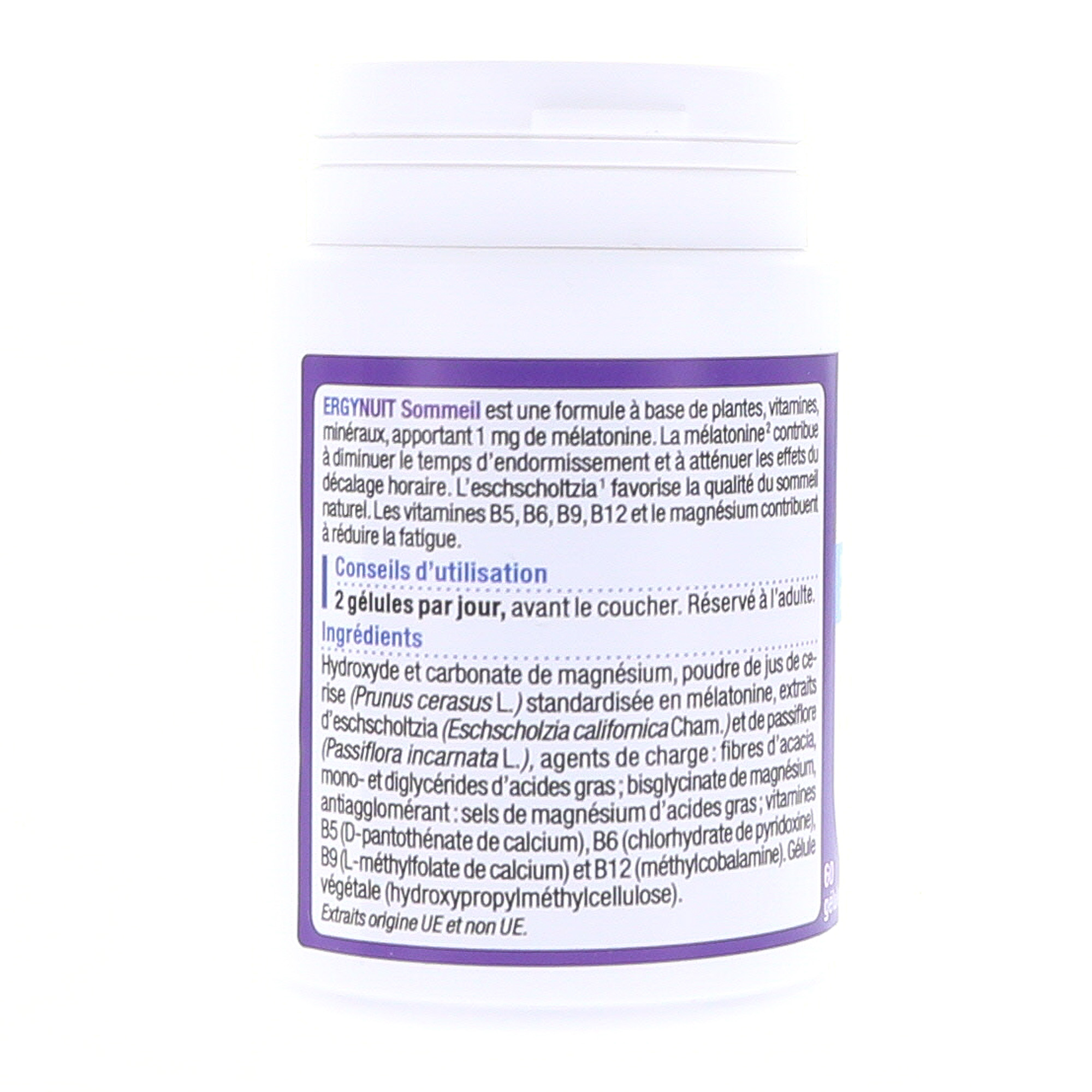 NUTERGIA ErgyNuit Sommeil x60 gélules contient les éléments suivants :