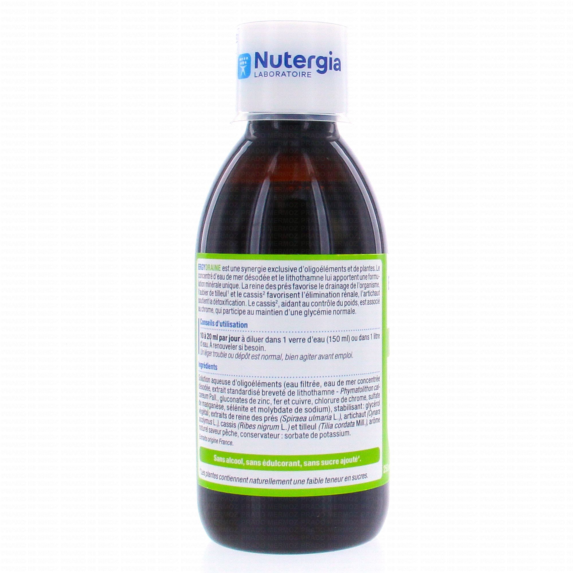 NUTERGIA Ergydraine est un complexe qui associe des plantes comme la reine des prés; le cassis et l'artichaut; pour faciliter les fonctions d'élimination de l'organisme. Le chrome contribue au maintien d'une glycémie normale.