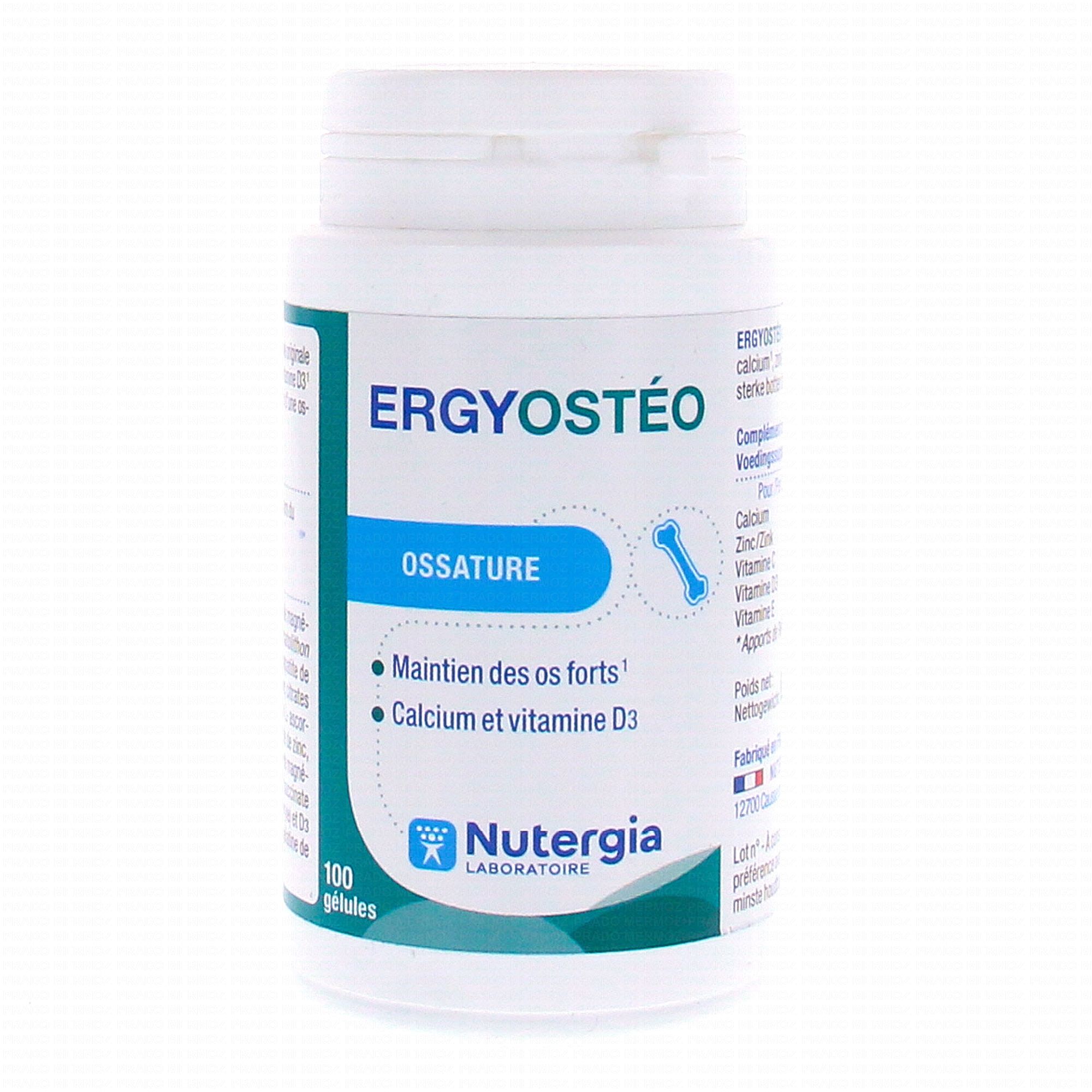 Ergyostéo de NUTERGIA est un complément alimentaire qui contribue au maintien du capital osseux. Il est indiqué en cas de déminéralisation, fragilité osseuse ou de carences en vitamine D et calcium. Conditionnement : pot plastique. Capital osseux.