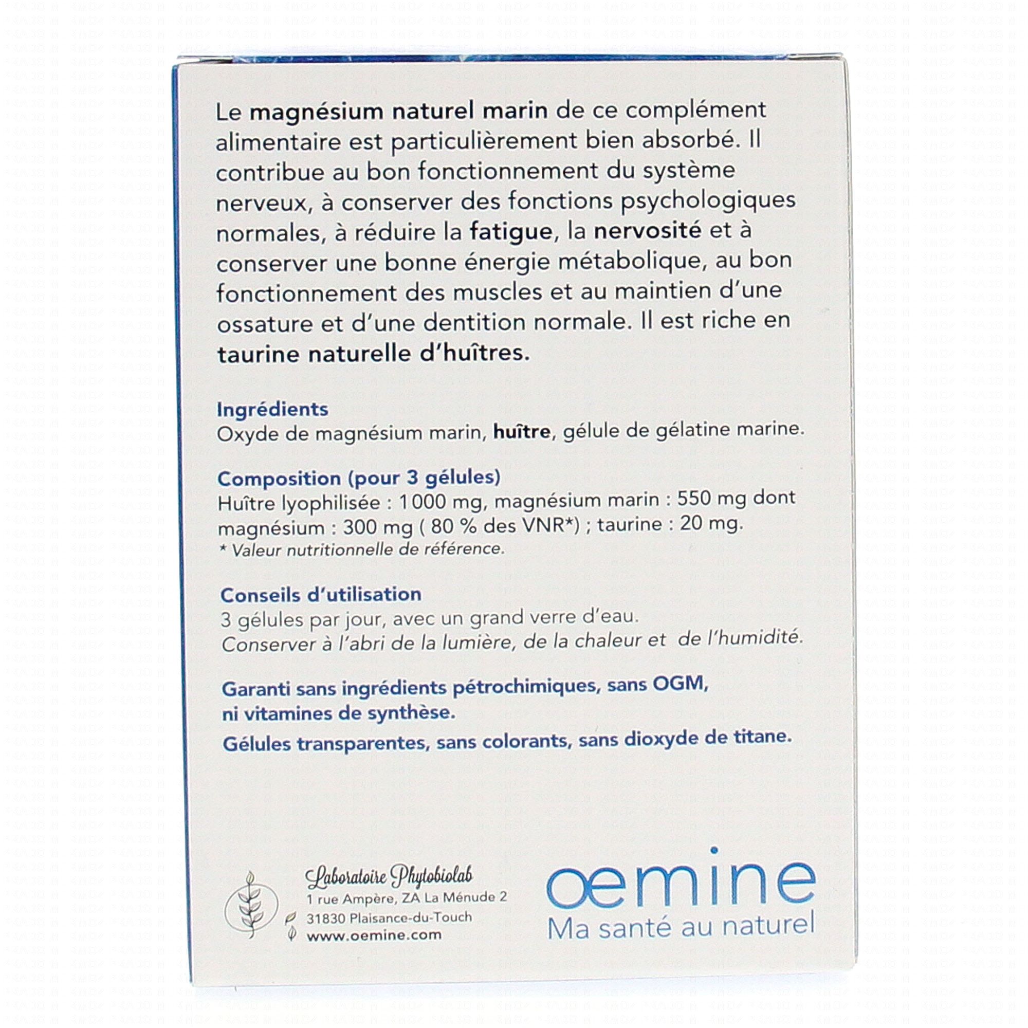 PHYTOBIOLAB Oemine magnésium huîtres 60 gélules contient les éléments suivants :