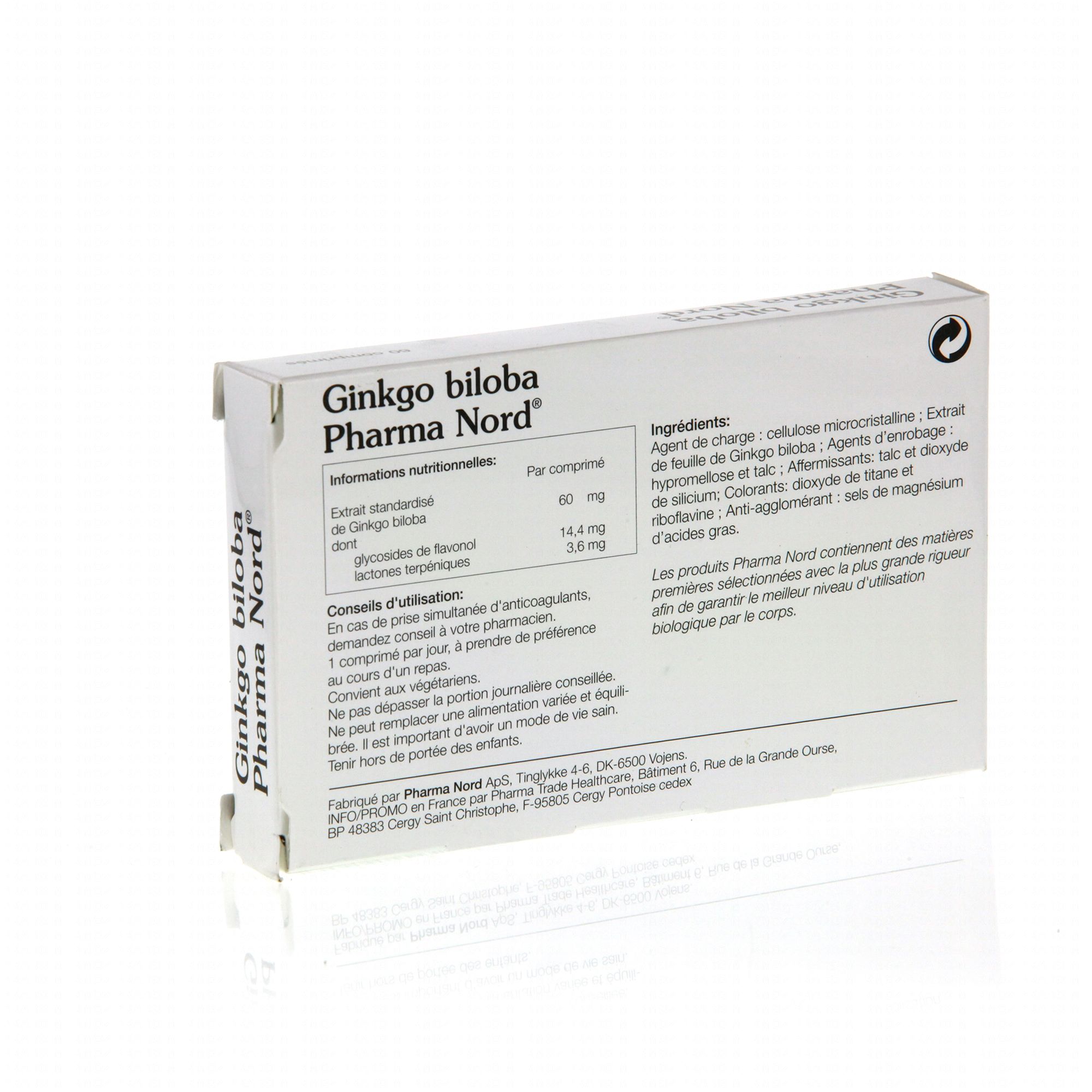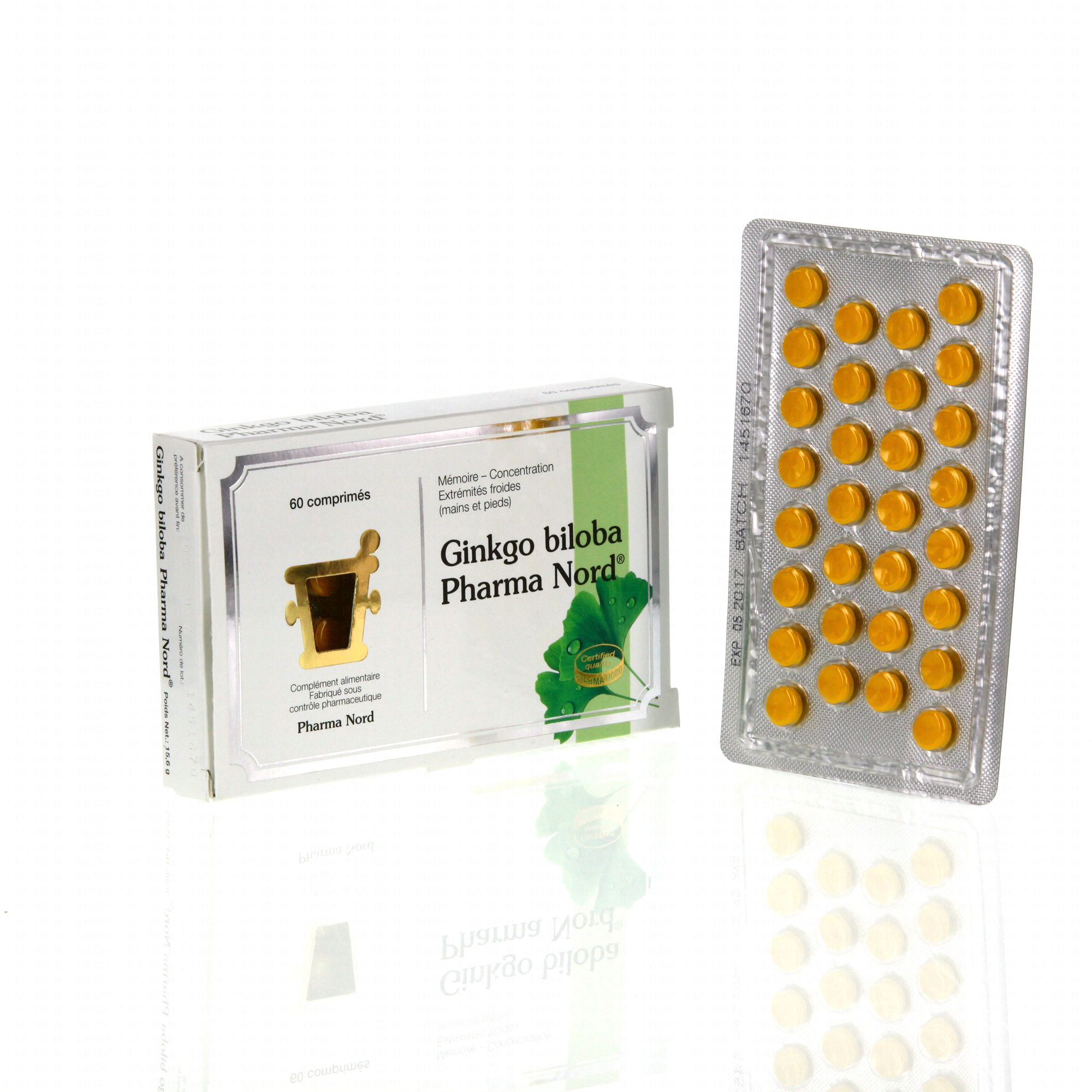 PHARMA NORD Ginkgo biloba boîte de 60 comprimés est un complément alimentaire qui grâce au Ginkgo aide à maintenir la mémoire avec le déclin de l'âge et aide à préserver la fonction cognitive.