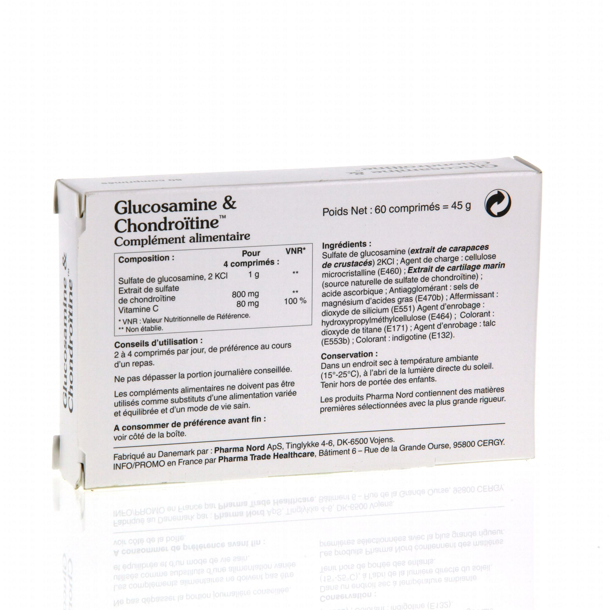 PHARMA NORD Glucosamine & Chondroïtine boïtes de 60 gélules est un complément alimentaire qui grâce à la glucosamine et à la Chondroïtine aide à maintenir des articulations saines et souples. La vitamine C favorise la formation normale de collagène pour assurer la fonction normale des cartilages