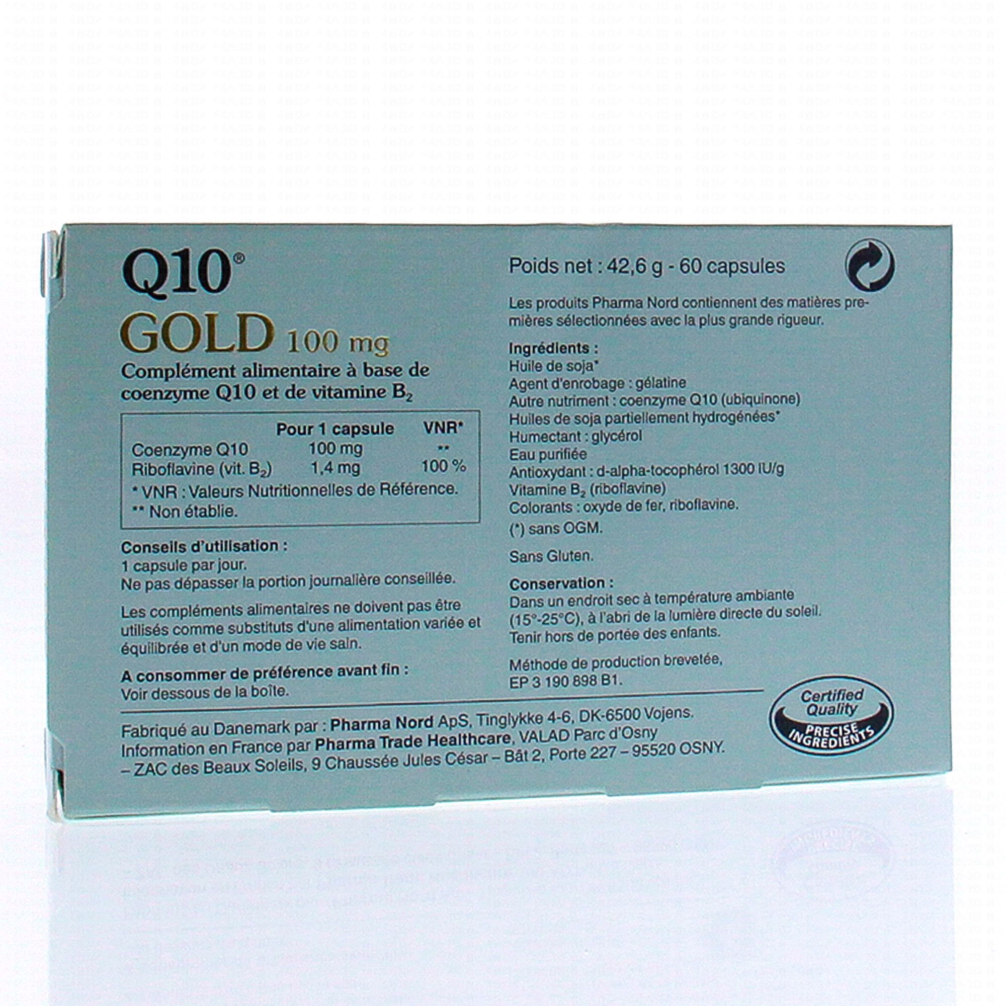 PHARMA NORD Q10 Gold 100mg 60 capsules contient les éléments suivants :