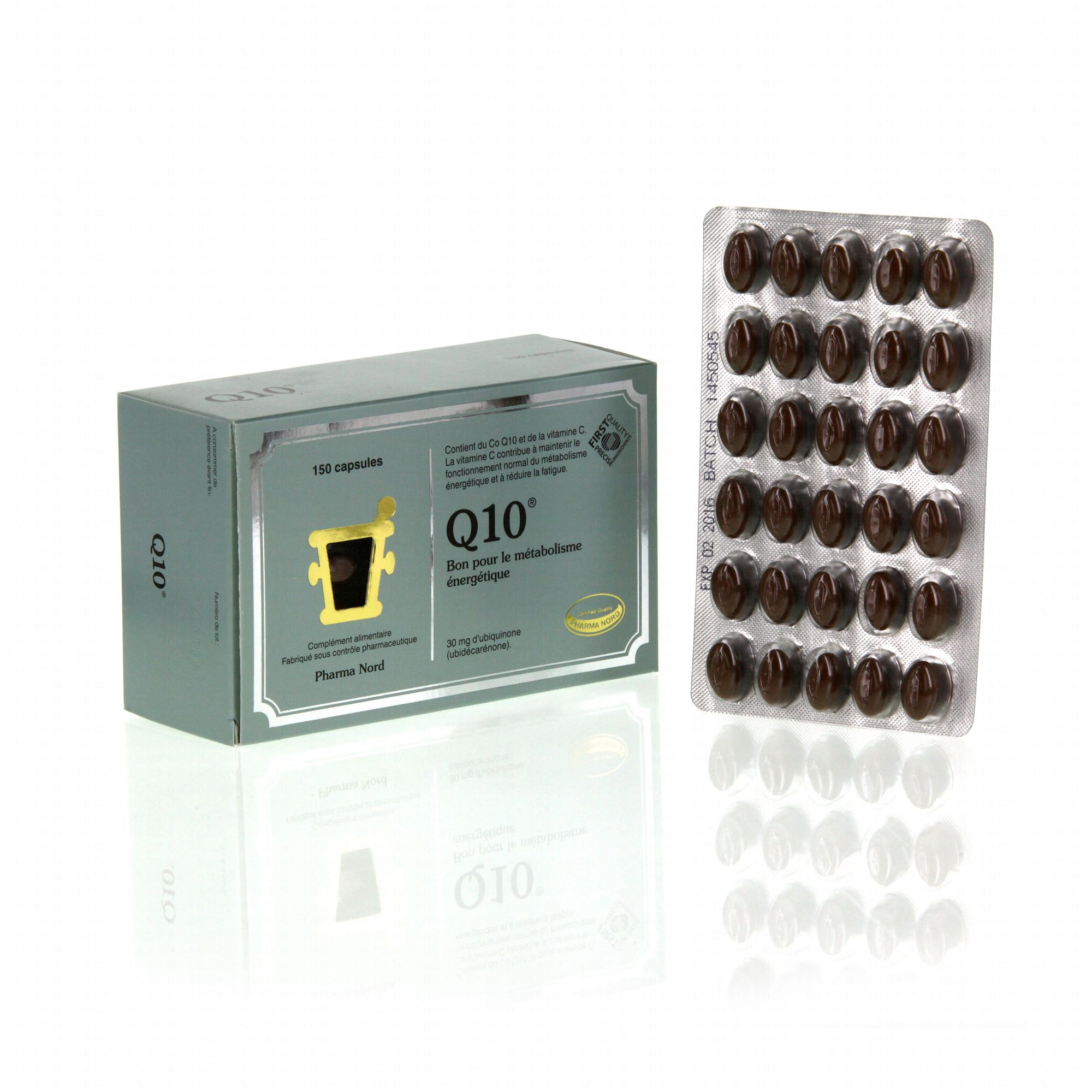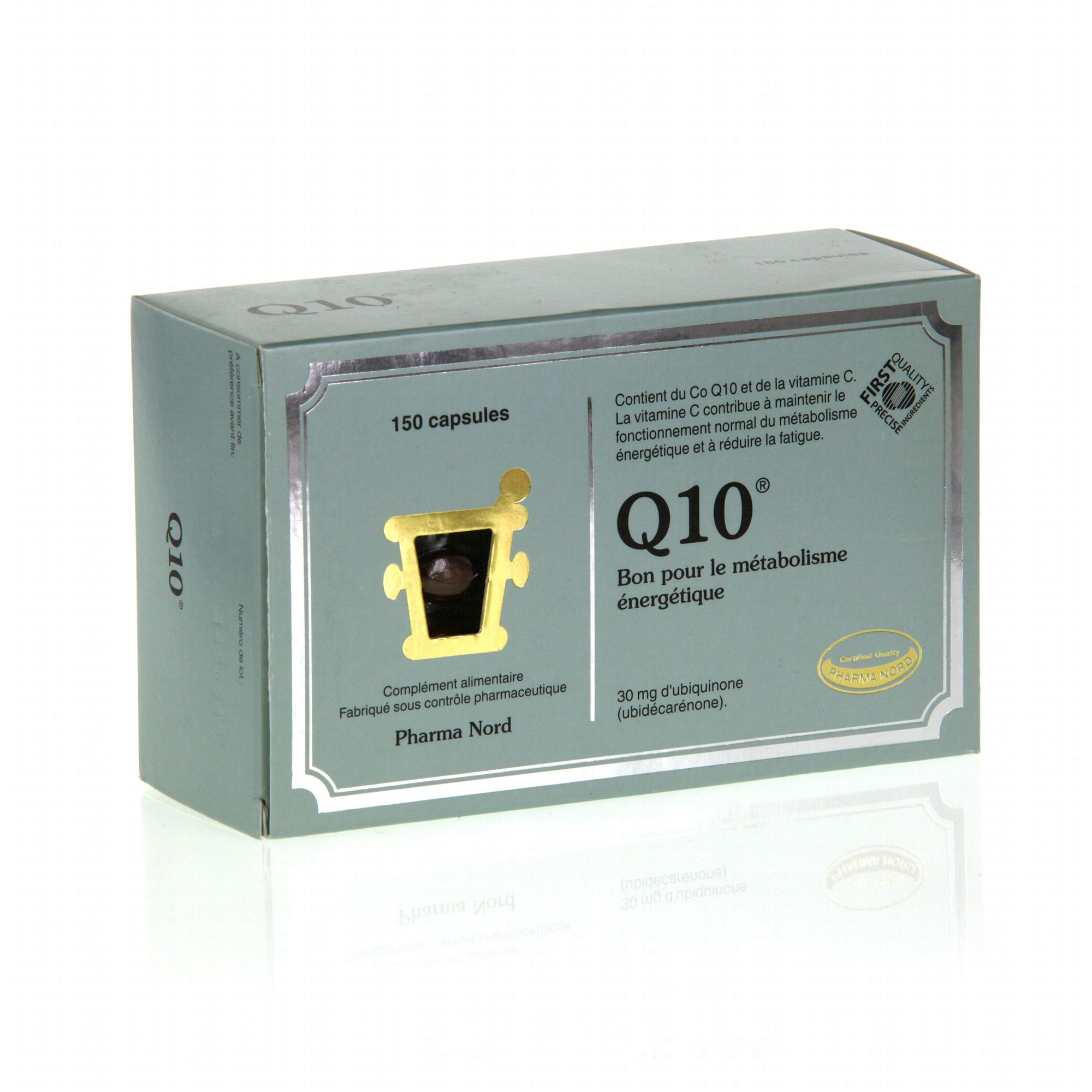 PHARMA NORD Q10 antioxydant boîte de 150 capsules contient les éléments suivants :