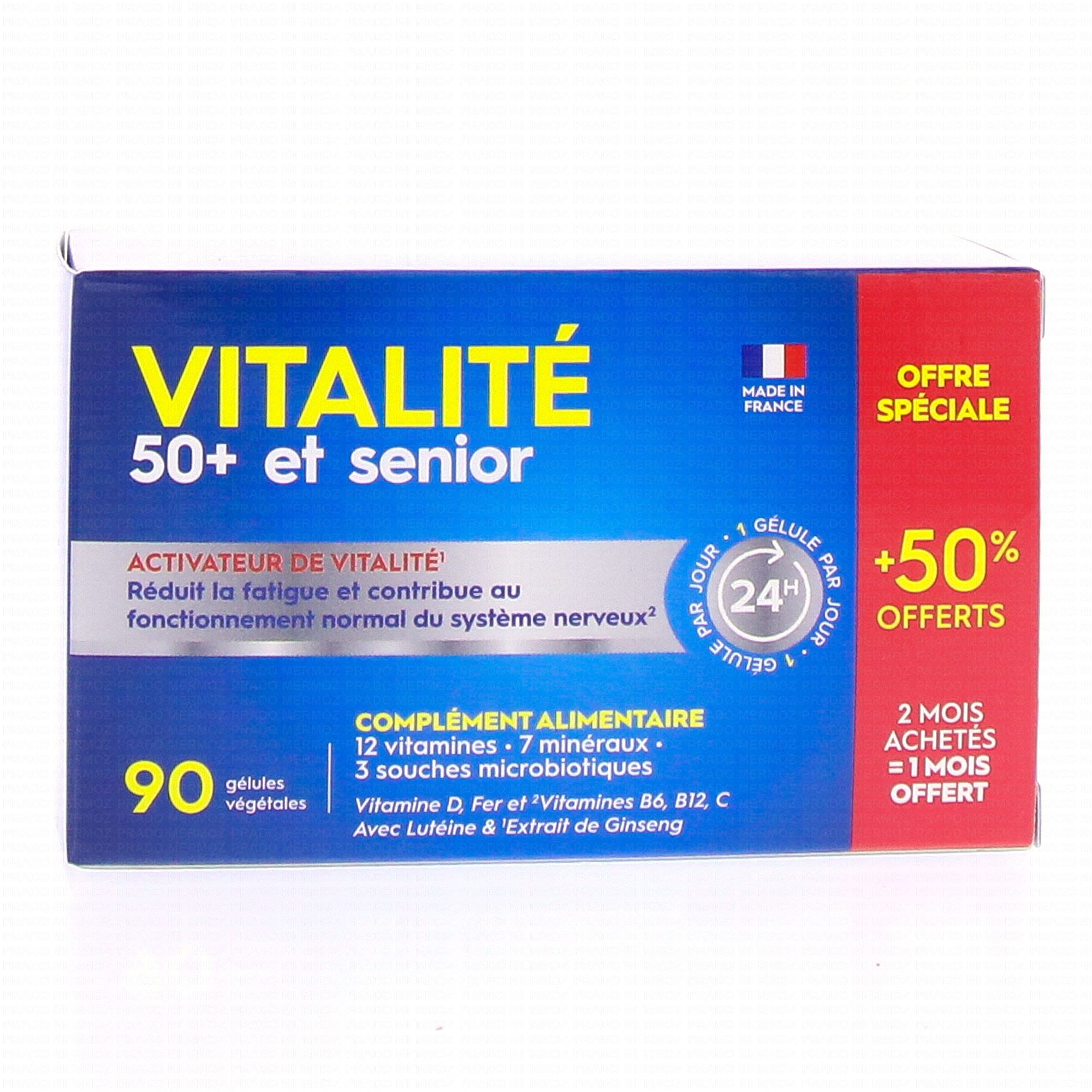 PHARMASCIENCE Vitalité 50+ et Sénior 90 gélules contient les éléments suivants :