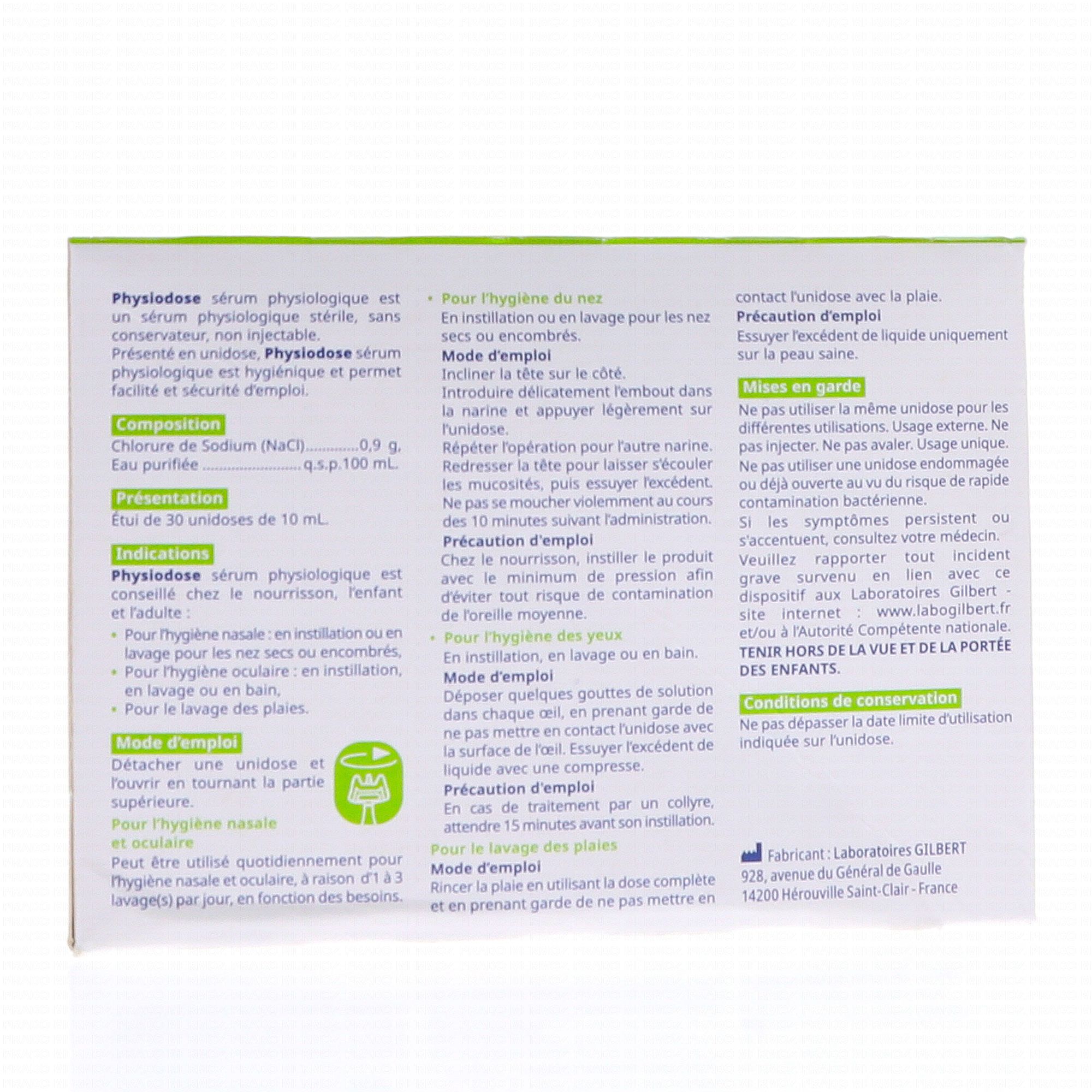 Le sérum physiologique Physiodose de Gilbert est parfait pour maintenir une hygiène nasale et oculaire quotidienne le nourrisson. Il aide à limiter et à prévenir les infections