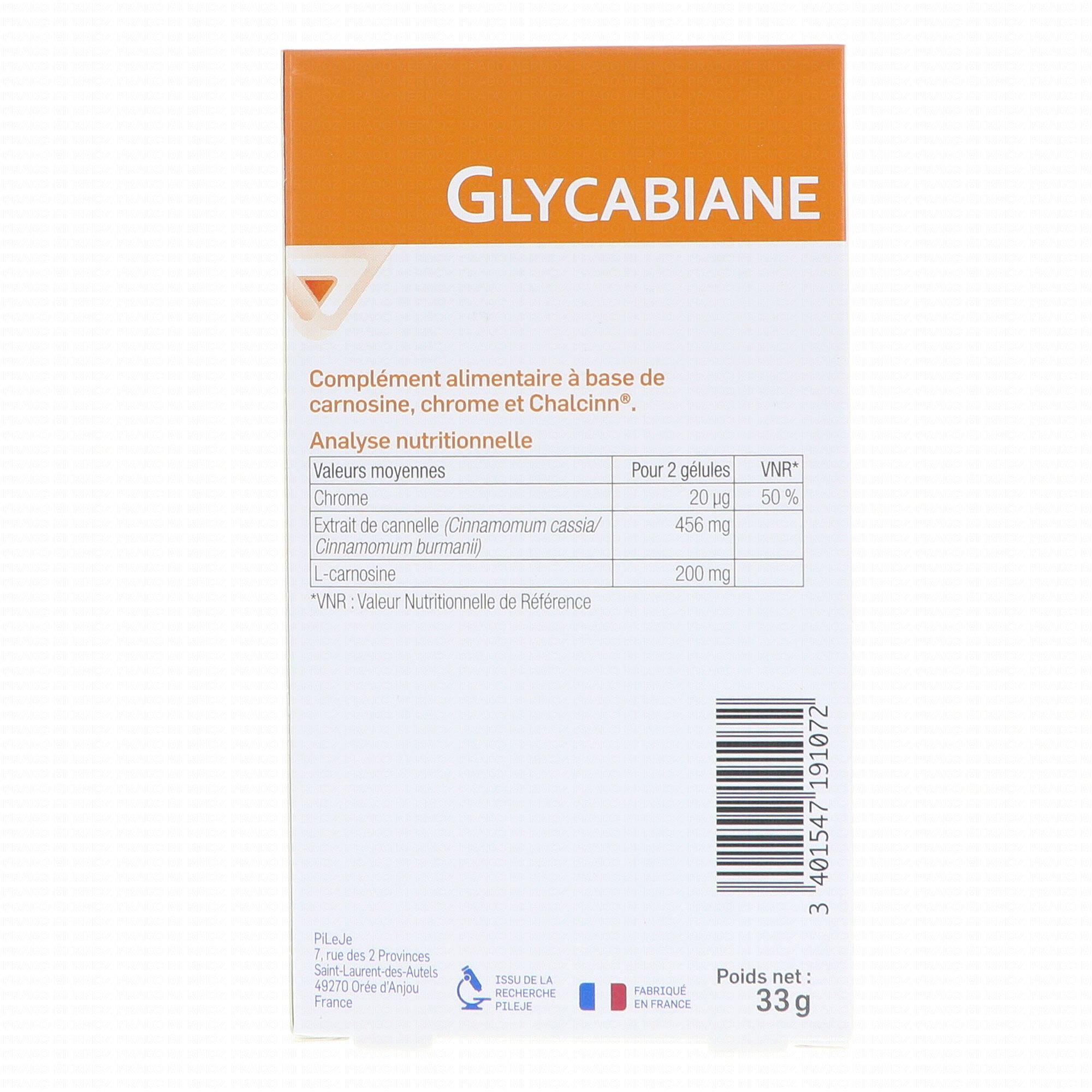 PILEJE Glycabiane 60 gélules contient les éléments suivants :