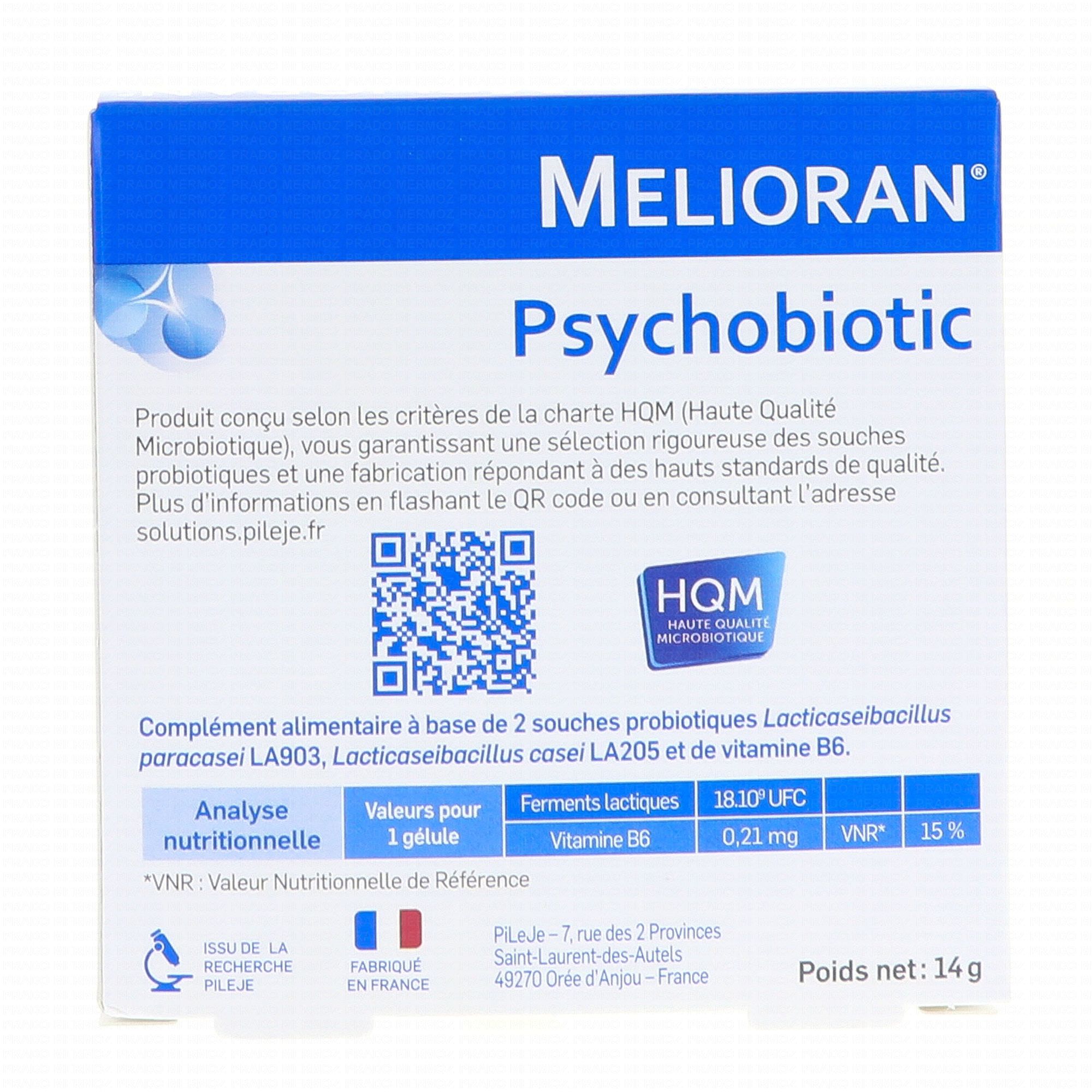 PILEJE Melioran Psychobiotic 30 gélules contient les éléments suivants :