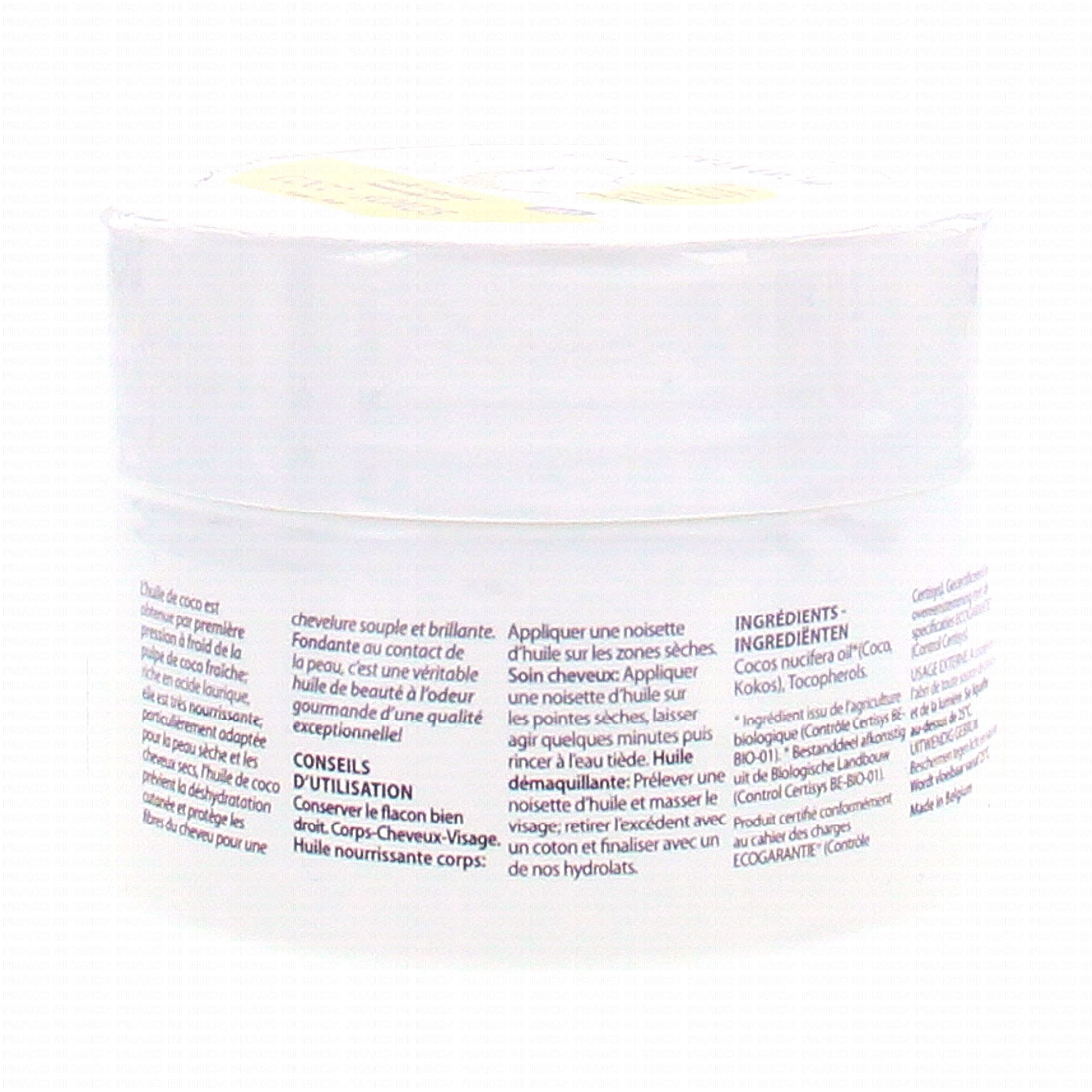 Profitez de tous les bienfaits de l'huile de noix de coco riche en acide gras. Hydratant pour cheveux, corps, mains et ongles il peut aussi s'utiliser comme démaquillant naturel. S'utiliser sous forme solide ou liquide.