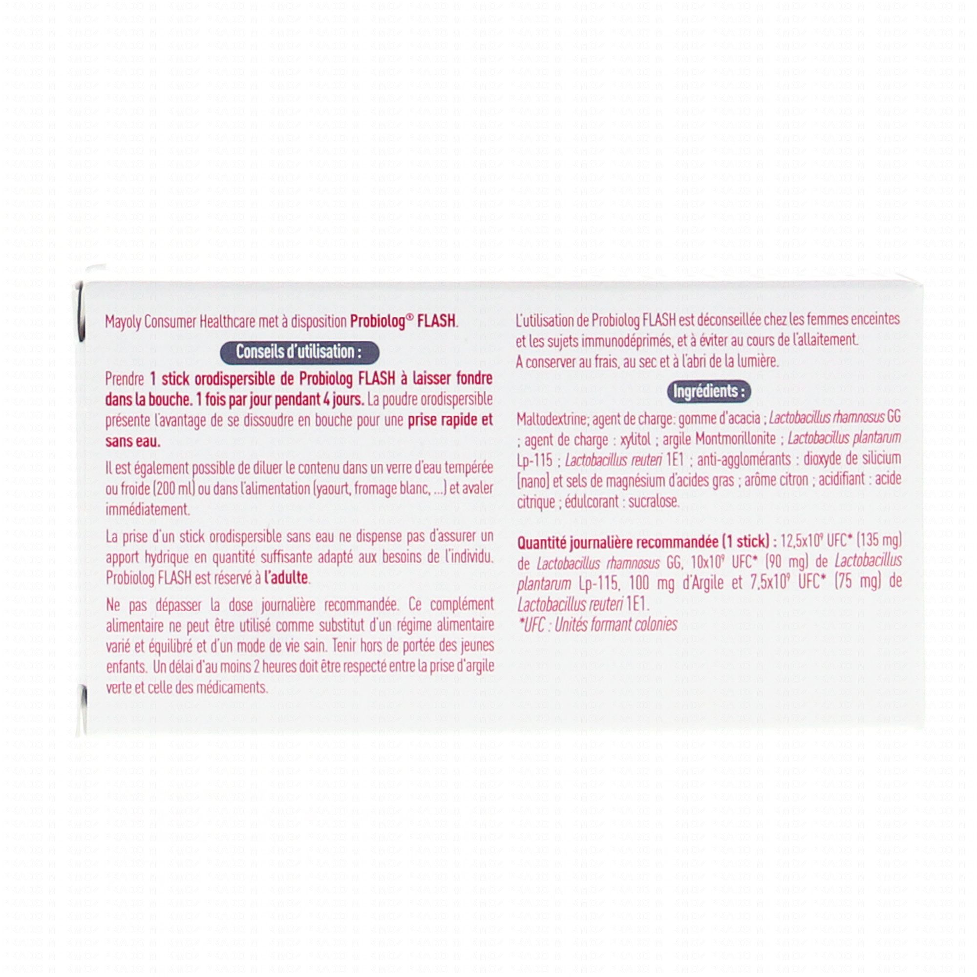 PROBIOLOG Flash 4 sticks contient les éléments suivants :