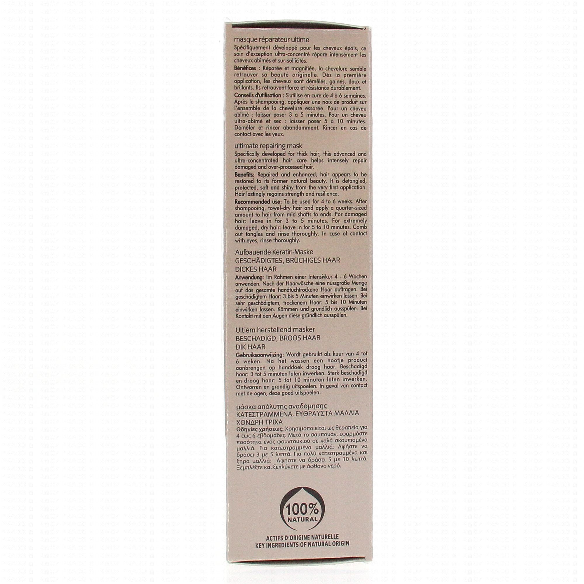 De l'extrait de kératine végétale : restructurant naturel du cheveu. Il vous assure de retrouver un cheveu fort et réparé depuis la racine jusqu'à sa pointe