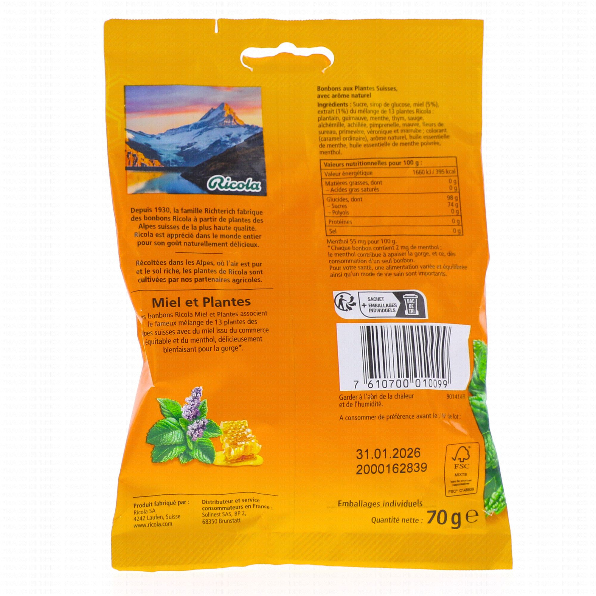 RICOLA Bonbons aux plantes suisses gout douceur de miel 70g contient les éléments suivants :