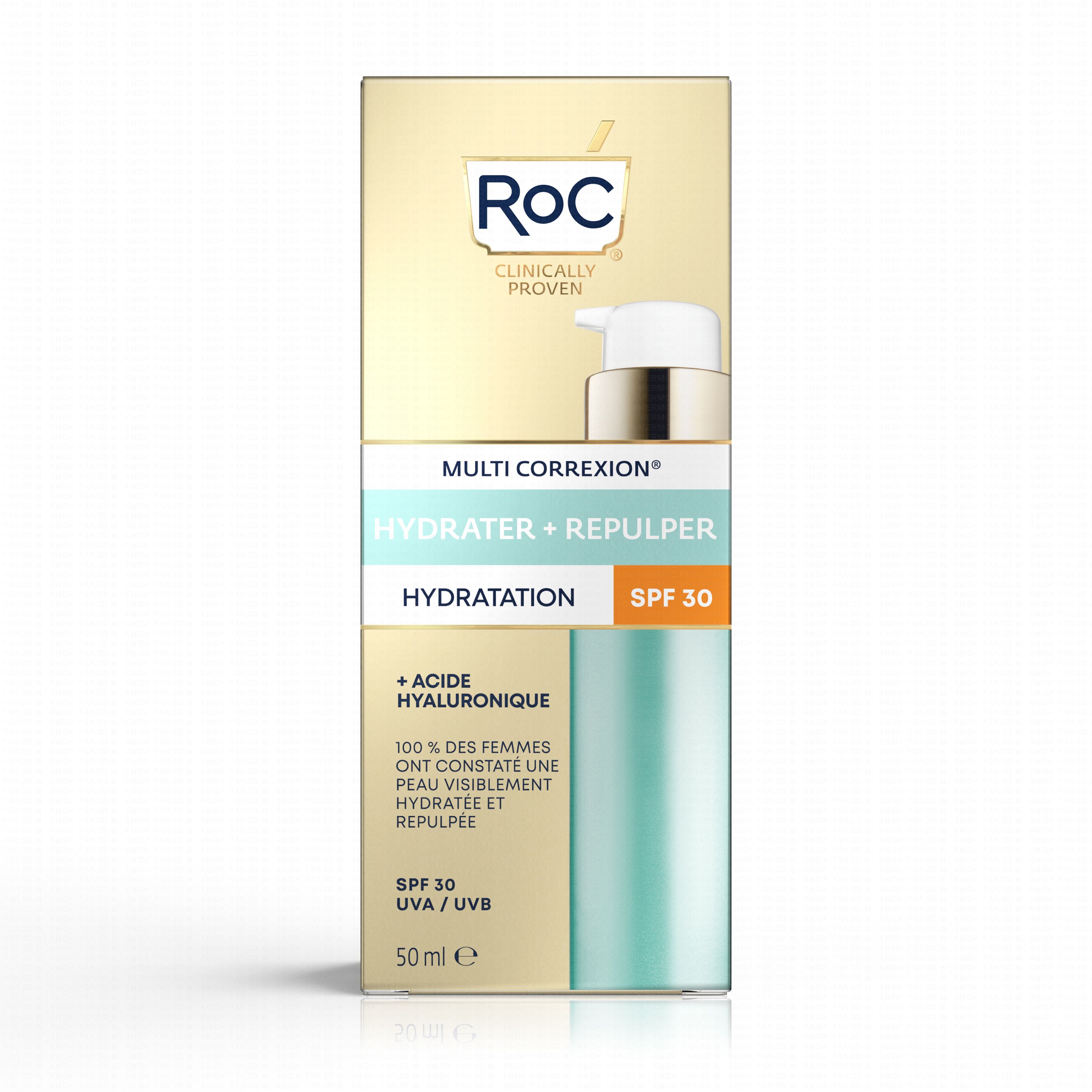 Commencez votre journée en hydratant votre peau en profondeur. La crème Hydrater + Repulper SPF30 RoC Multi Correxion. repulpe et protège visiblement votre peau. Instantanément, 100 % des femmes ont vu leur niveau d'hydratation multiplié par 2 et leur peau visiblement plus rebondie. En une semaine seulement, 97 % des femmes ont vu leurs rides et ridules visiblement réduites.