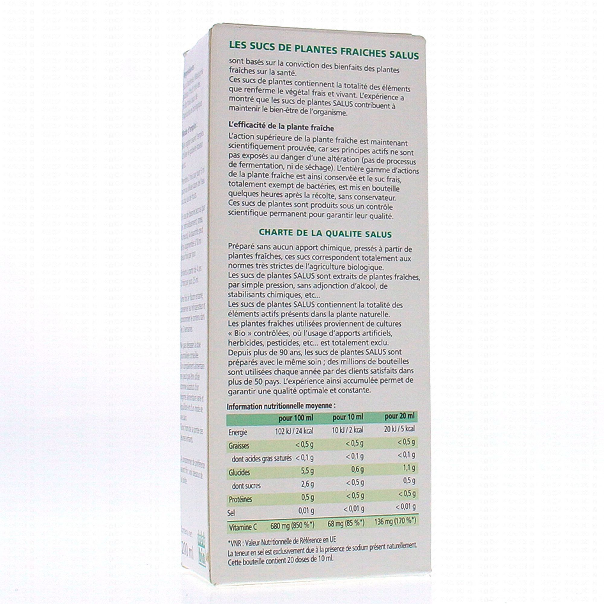 SALUS Acérola liquide bio 200ml contient les éléments suivants :