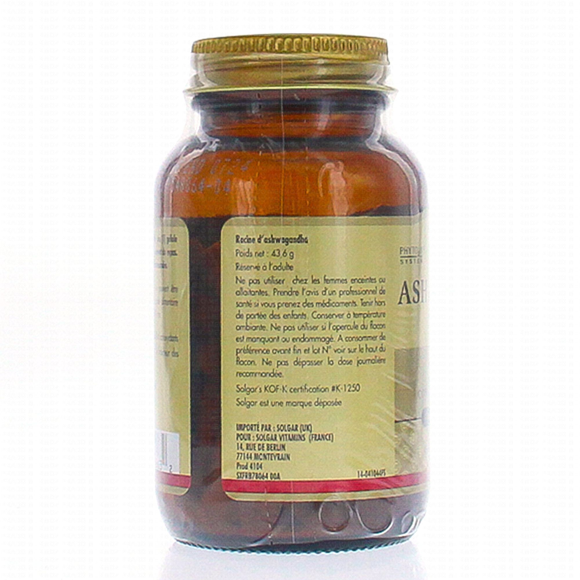 SOLGAR Ashwagandha x60 gélules contient les éléments suivants :