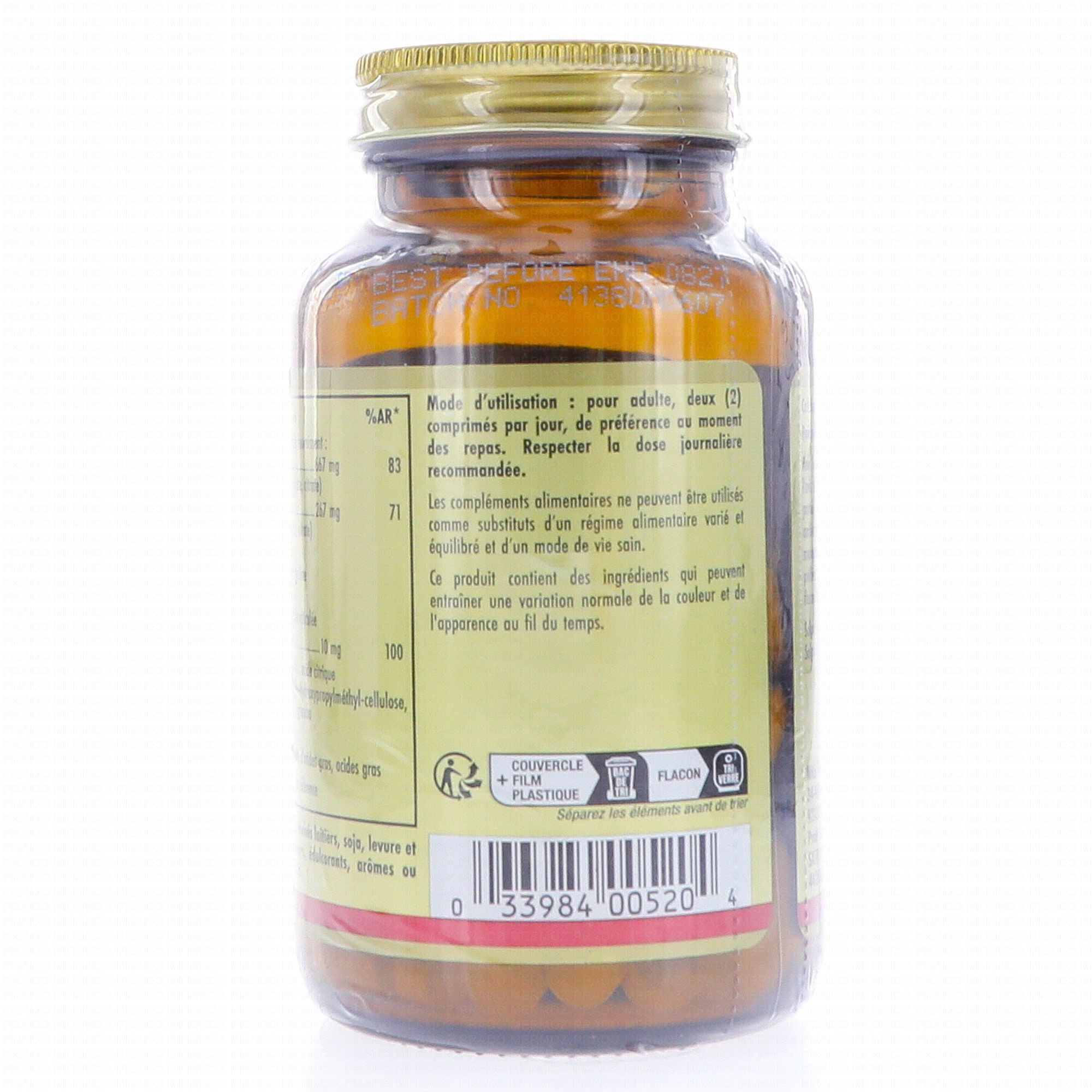 SOLGAR Calcium magnésium plus Zinc 100 comprimés contient les éléments suivants :
