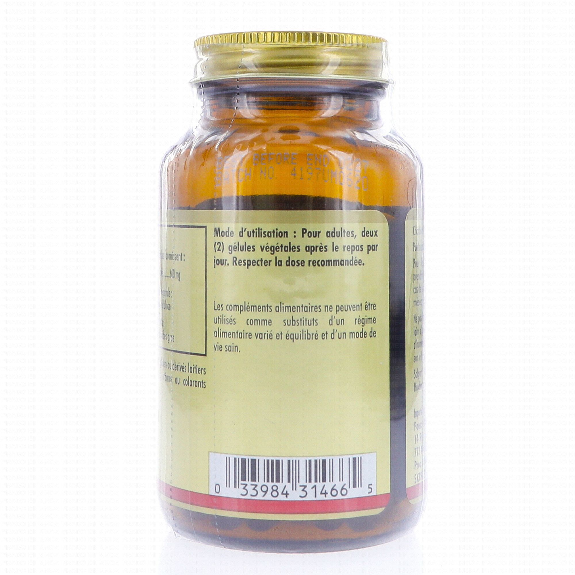 SOLGAR Charbon Végétal Activé 100 gélules végétales contient les éléments suivants :