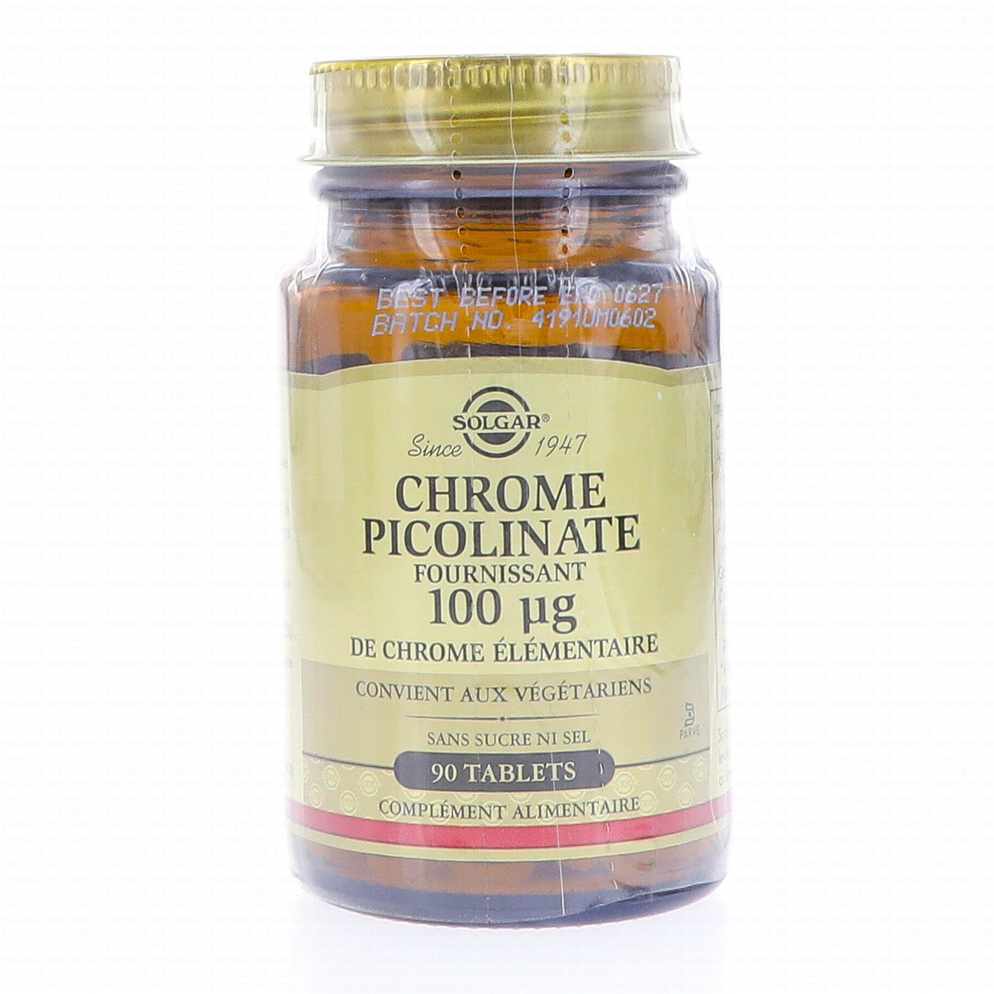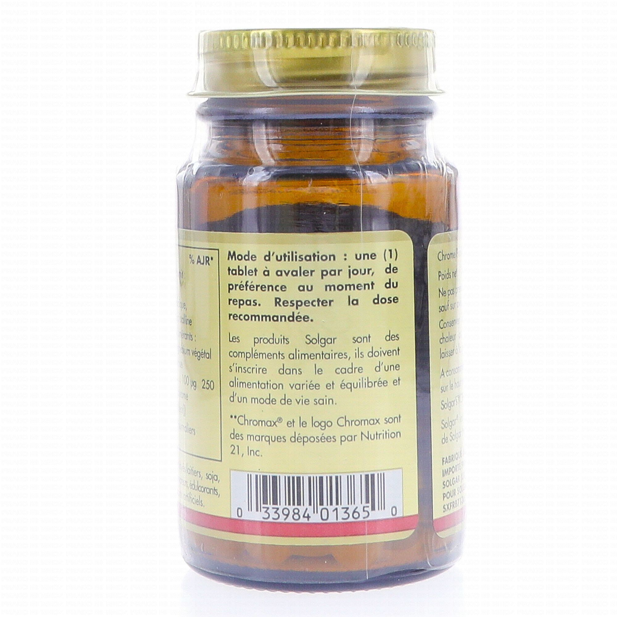 SOLGAR Chromium picolinate 90 comprimés aide à maintenir un taux normal de glycémie dans le cadre d'un mode de vie sain grace au Chrome.