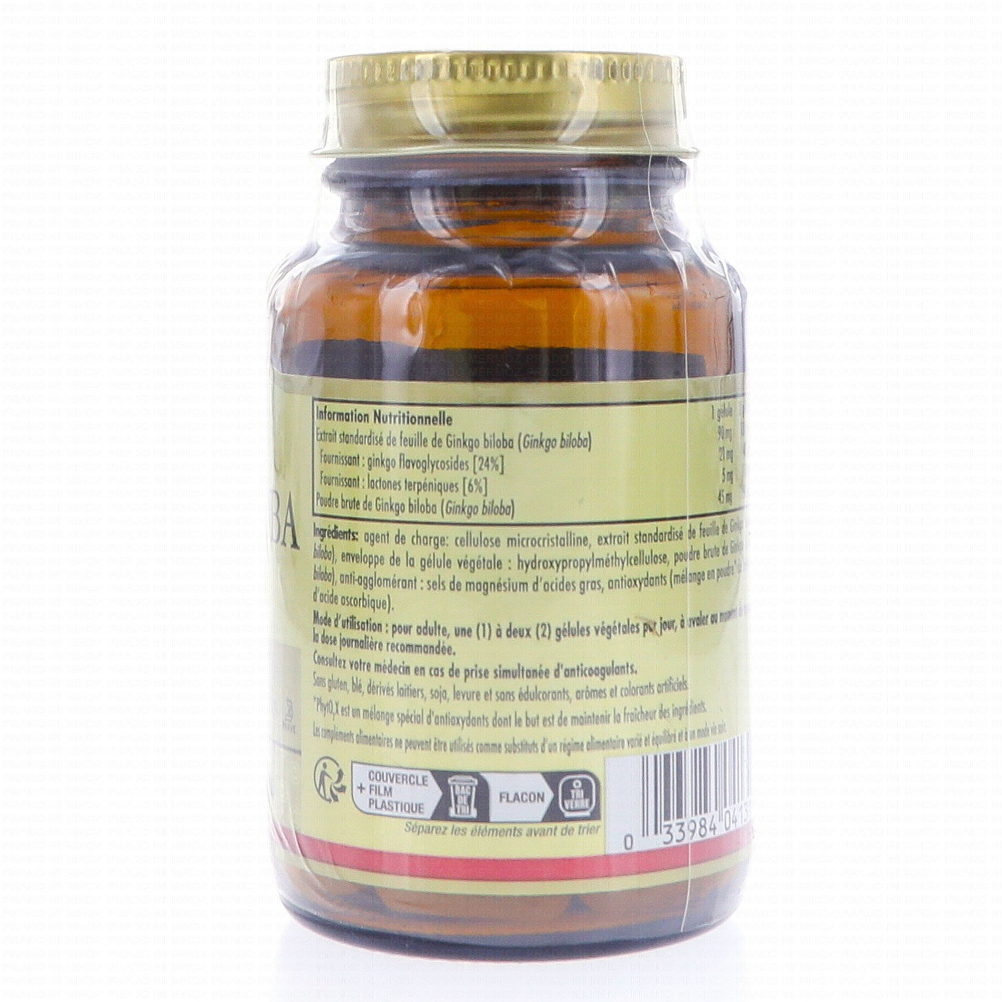 SOLGAR Ginkgo biloba 60 gélules contient les éléments suivants :