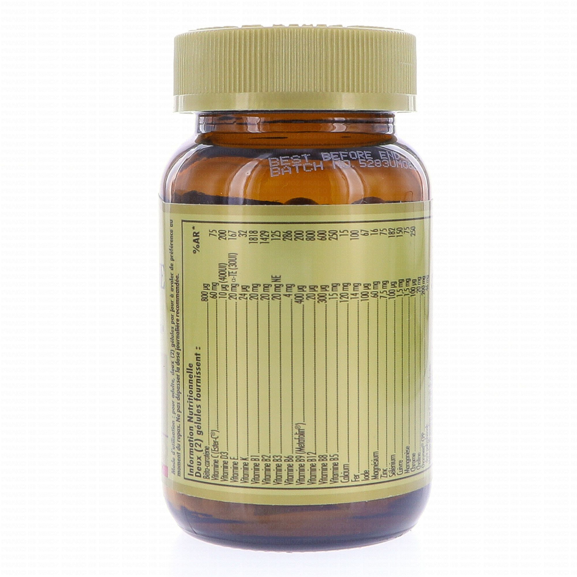 SOLGAR Multivitamine Femme x60 gélules contient les éléments suivants :