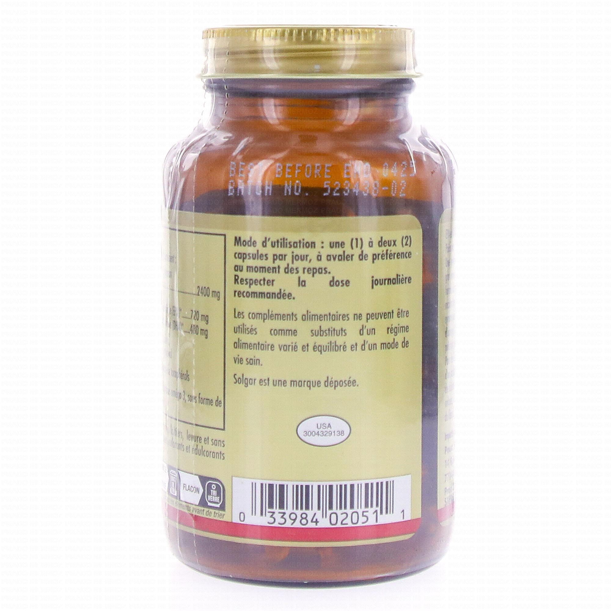 SOLGAR Oméga-3 flacon de 60 capsules contient les éléments suivants :