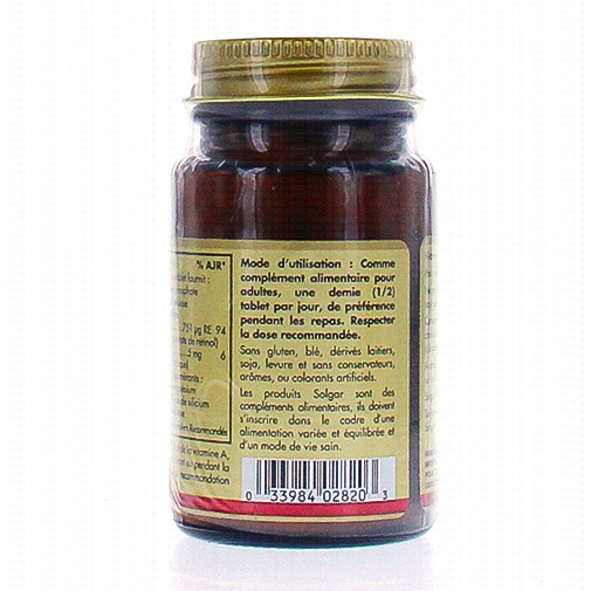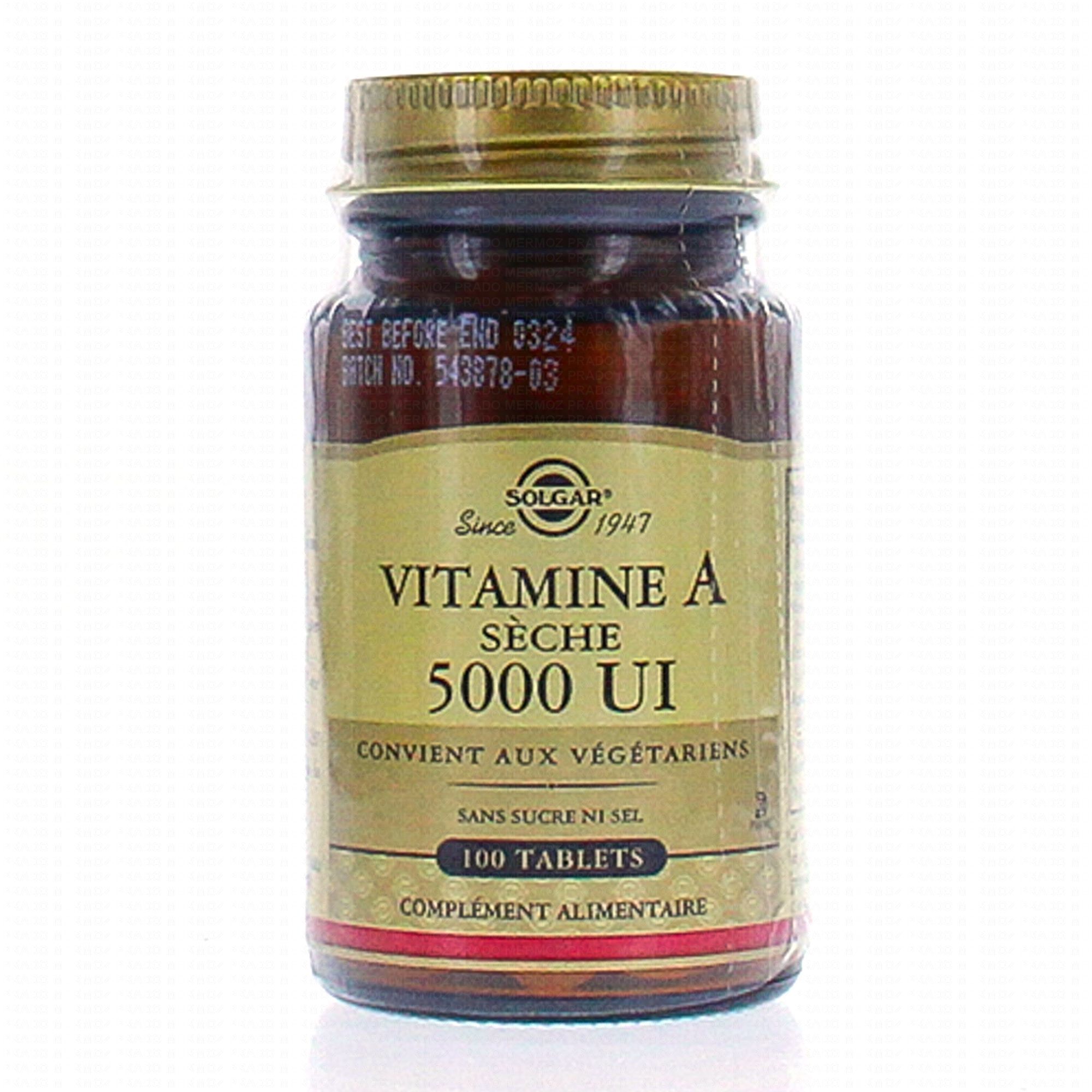 SOLGAR Vitamine A sèche 5000 UI 100 TAB contient les éléments suivants :