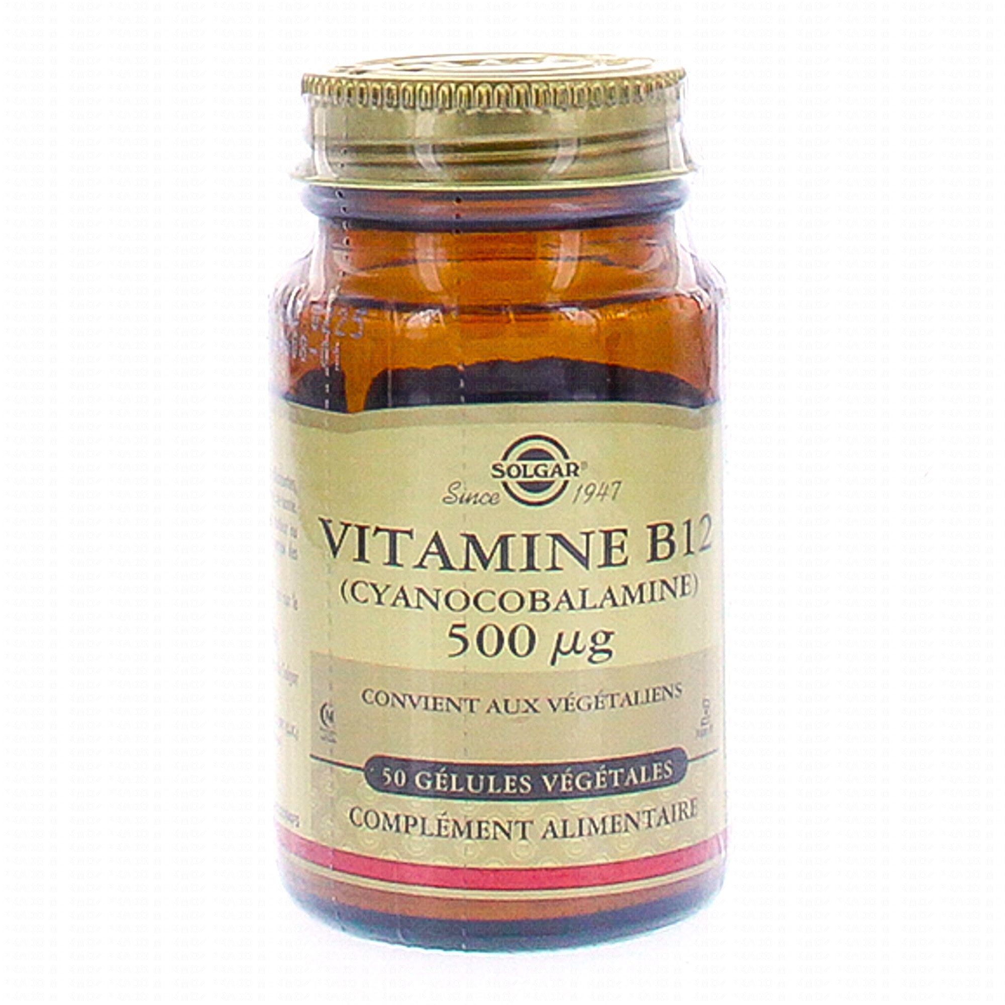 SOLGAR Vitamine B12 cyanocobalamine 500µg x50 gélules contient les éléments suivants :