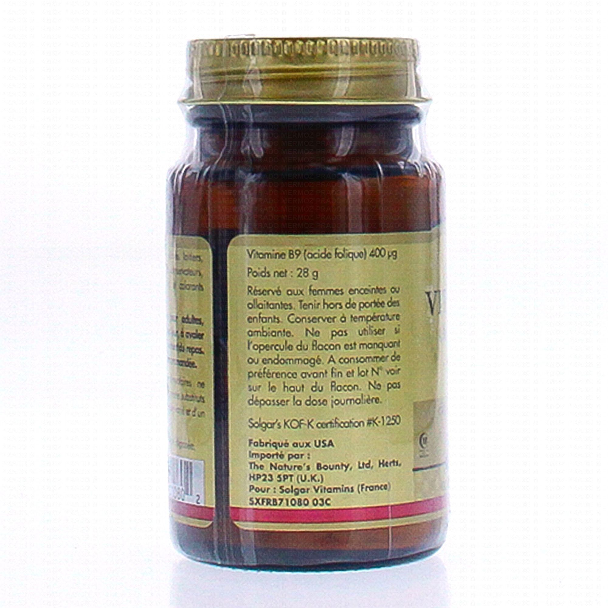 SOLGAR Vitamine B9 400 µm x100 comprimés #skincare